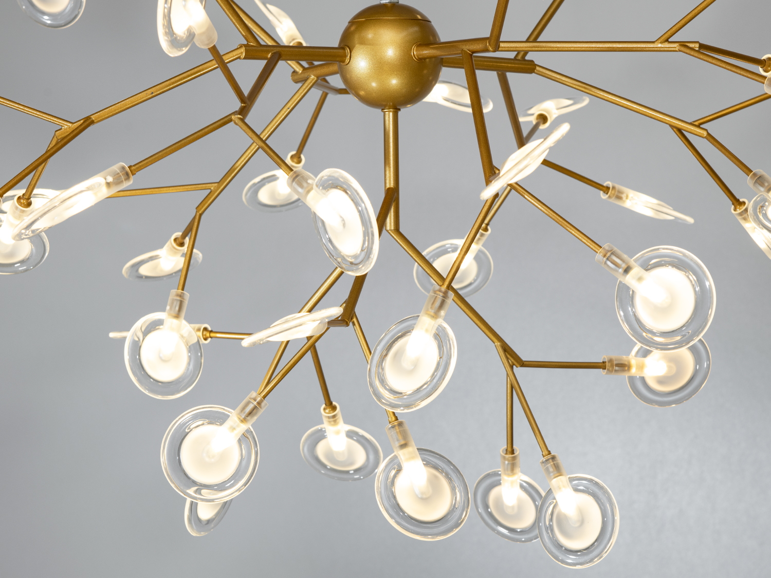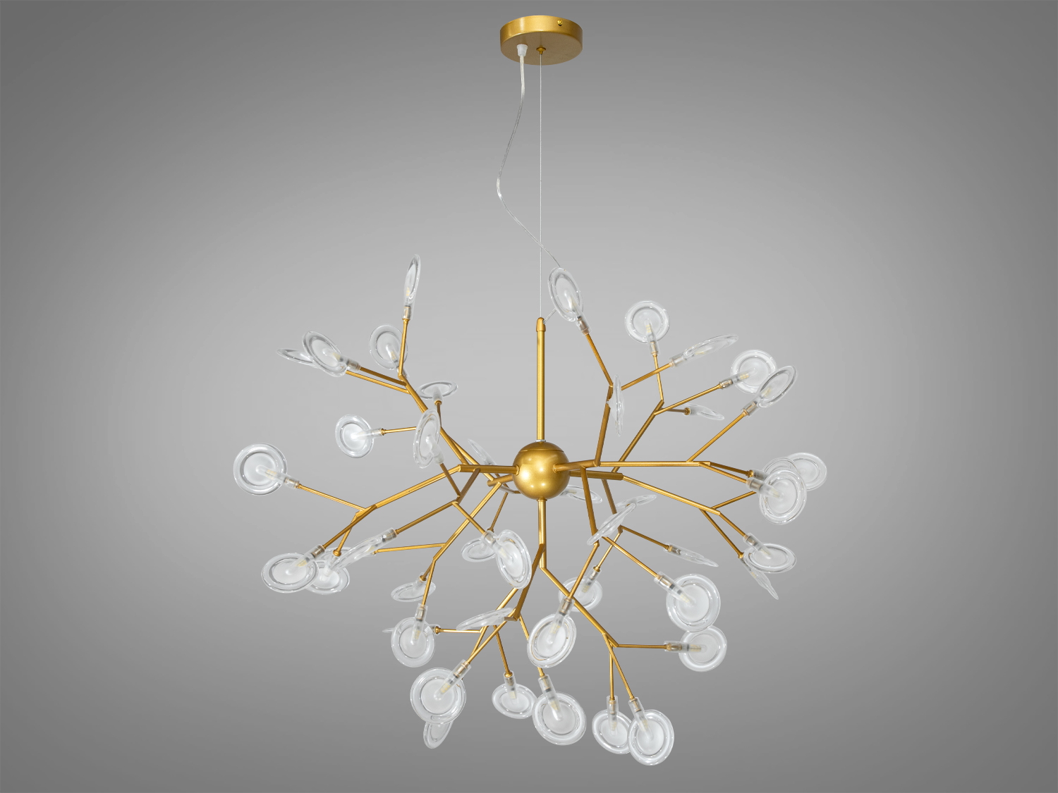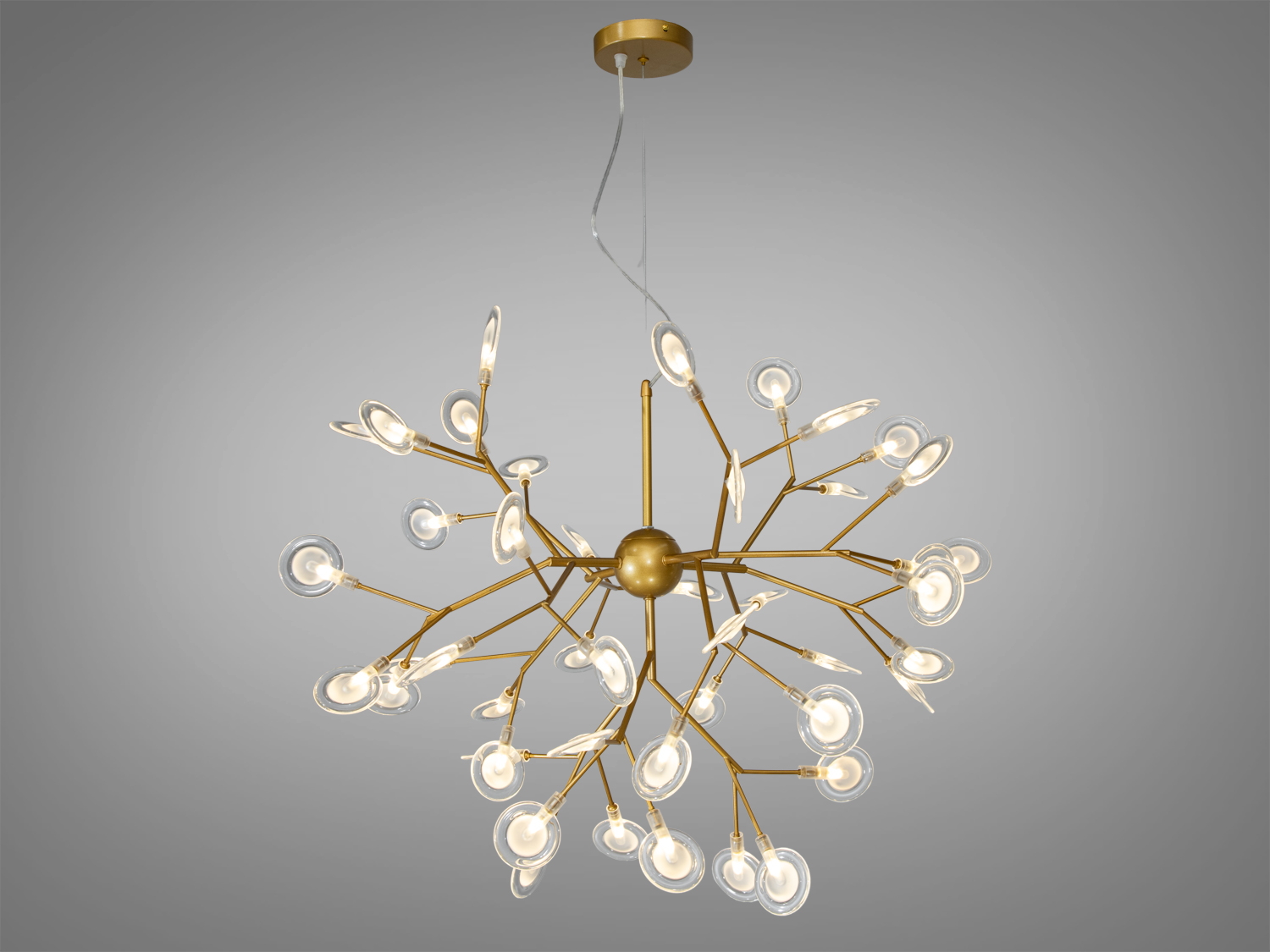 Люстра "Светлячок" Скандинавский лофт золото сатин 45 ламп для гостиной 887-45C GD