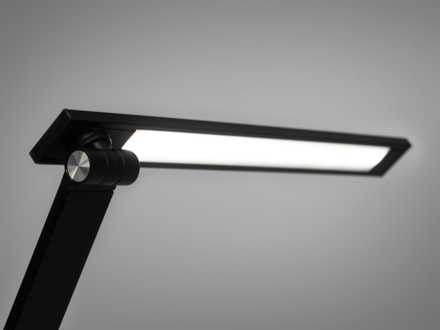 Поворотний механізм та можливість регулювання висоти від 20 см до 60 см роблять лампу зручною для різних завдань, будь то читання чи робота за комп'ютером.
