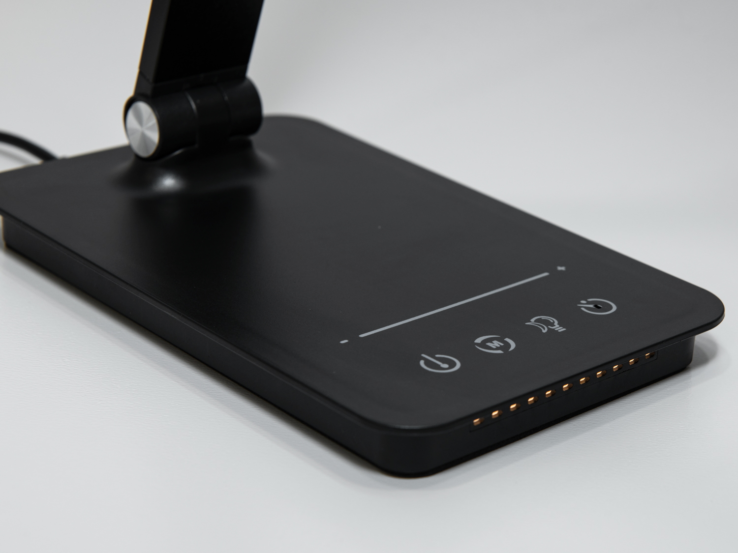 Лампа виконана з якісного пластику, що робить її легкою та міцною. Компактна основа дозволяє легко переміщати лампу між різними приміщеннями.