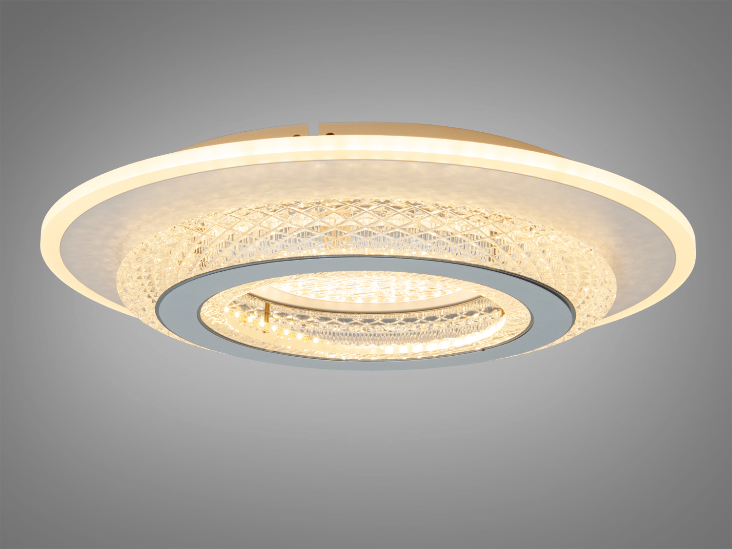 Светодиодный потолочный светильник 68 Вт с технологией перемены цветовой температуры (CCT) — это идеальный выбор для создания комфортного освещения в вашем доме или офисе. Белый корпус и изящный прозрачный орнамент делают светильник универсальным решением для современных интерьеров.