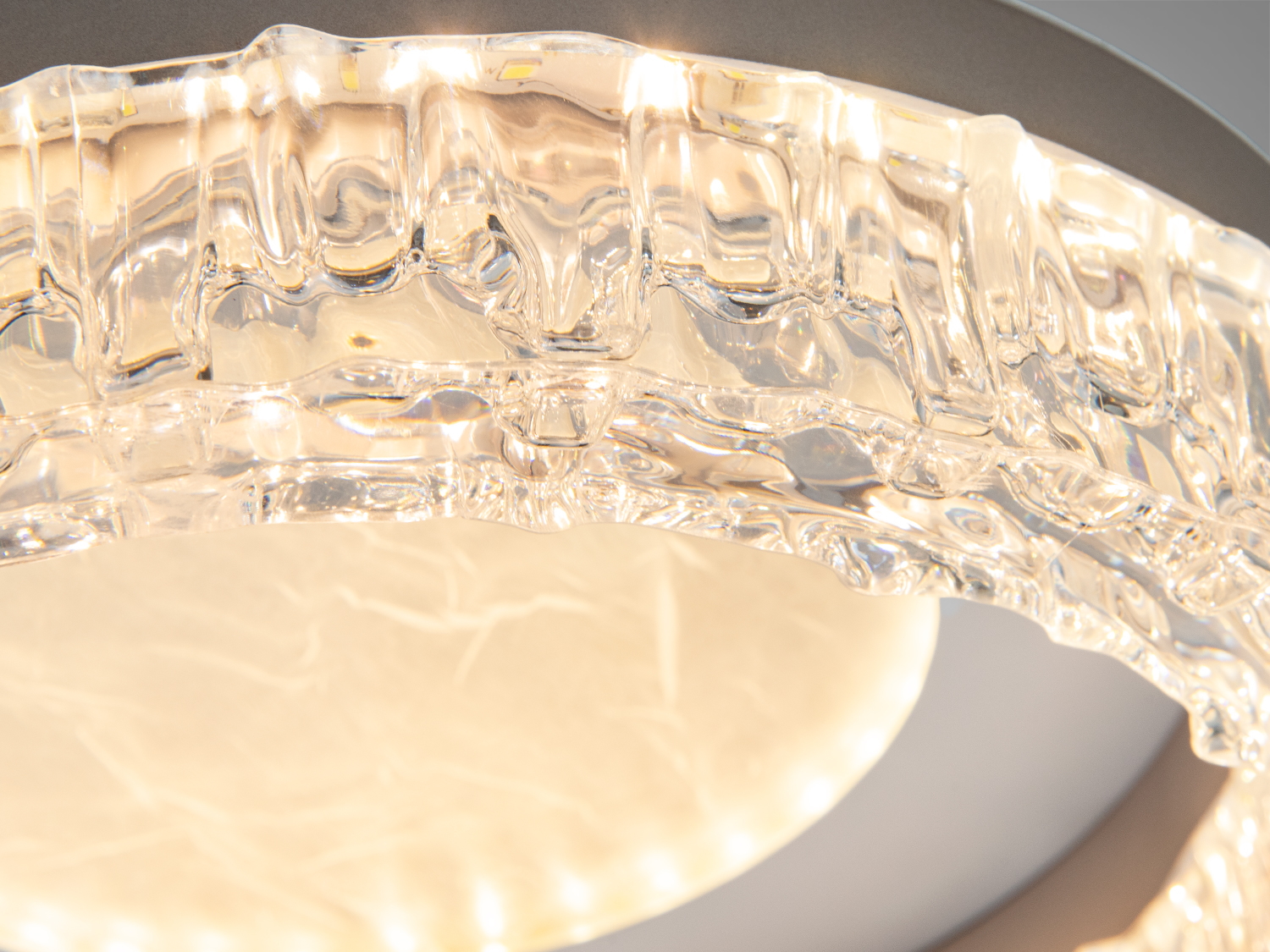 Дизайн светильника отличает белый корпус с прозрачным рельефным ободком, который создает мягкое распределение света по периметру. Такой подход сохраняет чистую геометрию и добавляет декоративность, не перегружая пространство. Светильник выполнен из металла и акрила, что гарантирует его прочность и долговечность.