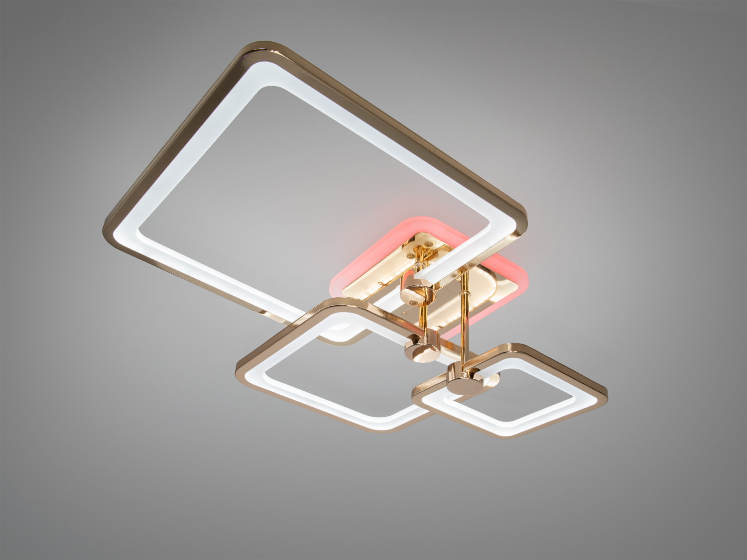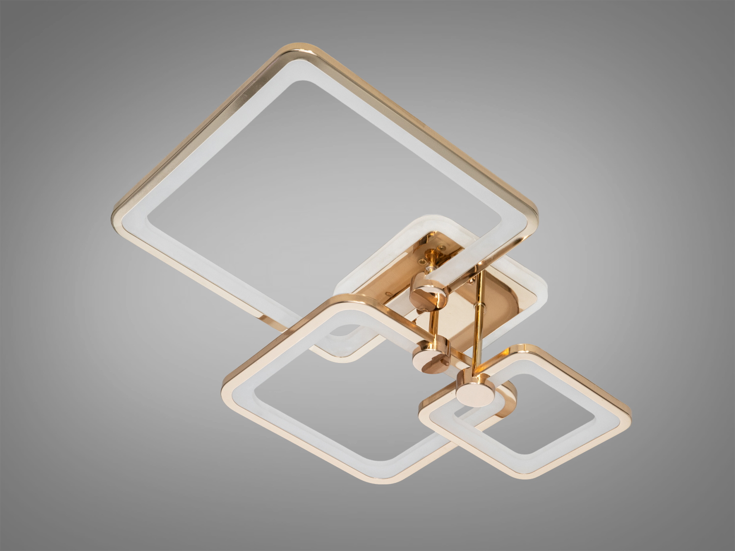 Эта потолочная LED люстра 8060 в золотом цвете сочетает в себе элегантный дизайн и продуманный функционал для домашнего и коммерческого использования. Устройство оснащено тремя квадратными световыми модулями, которые создают аккуратную композицию и обеспечивают равномерное освещение до 12 м².