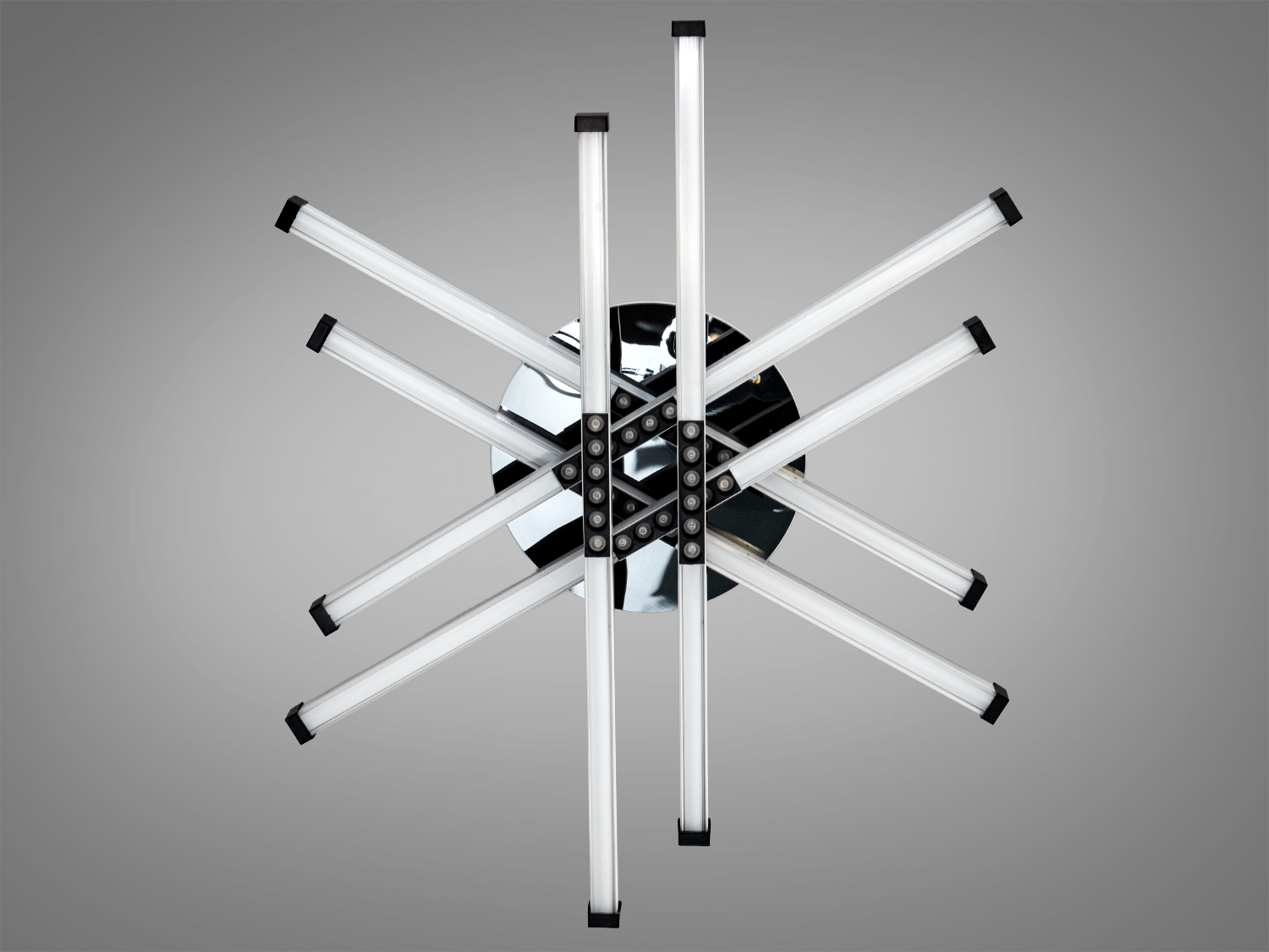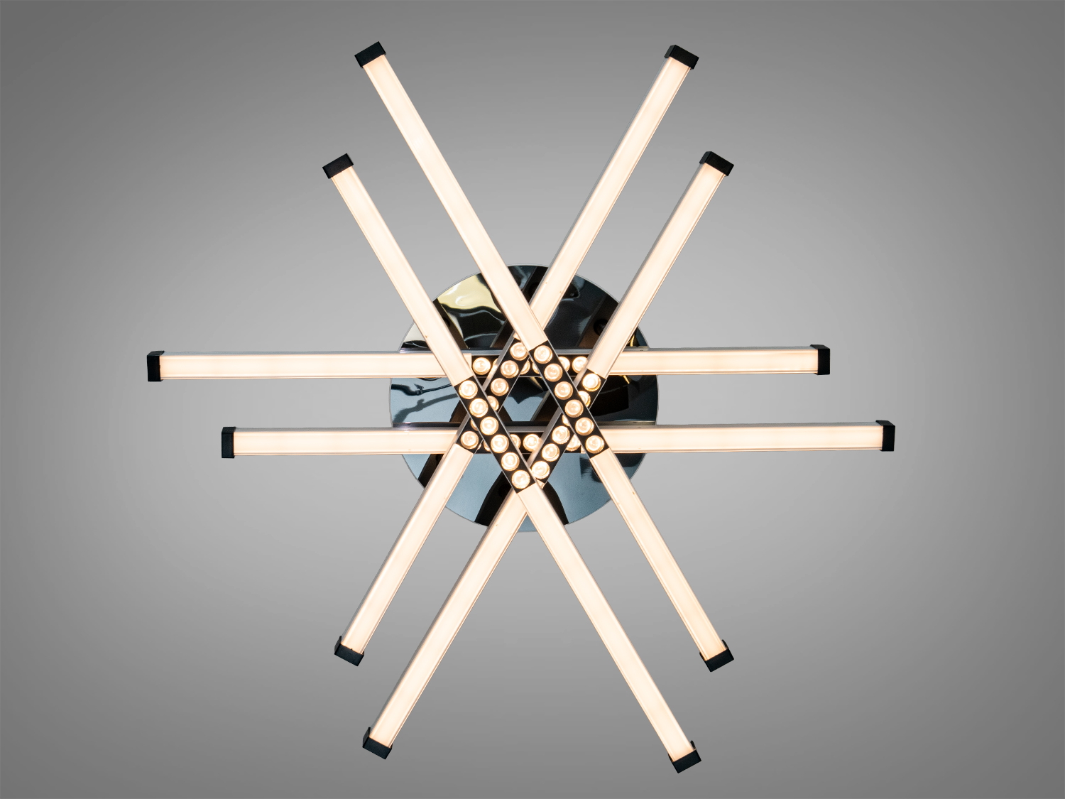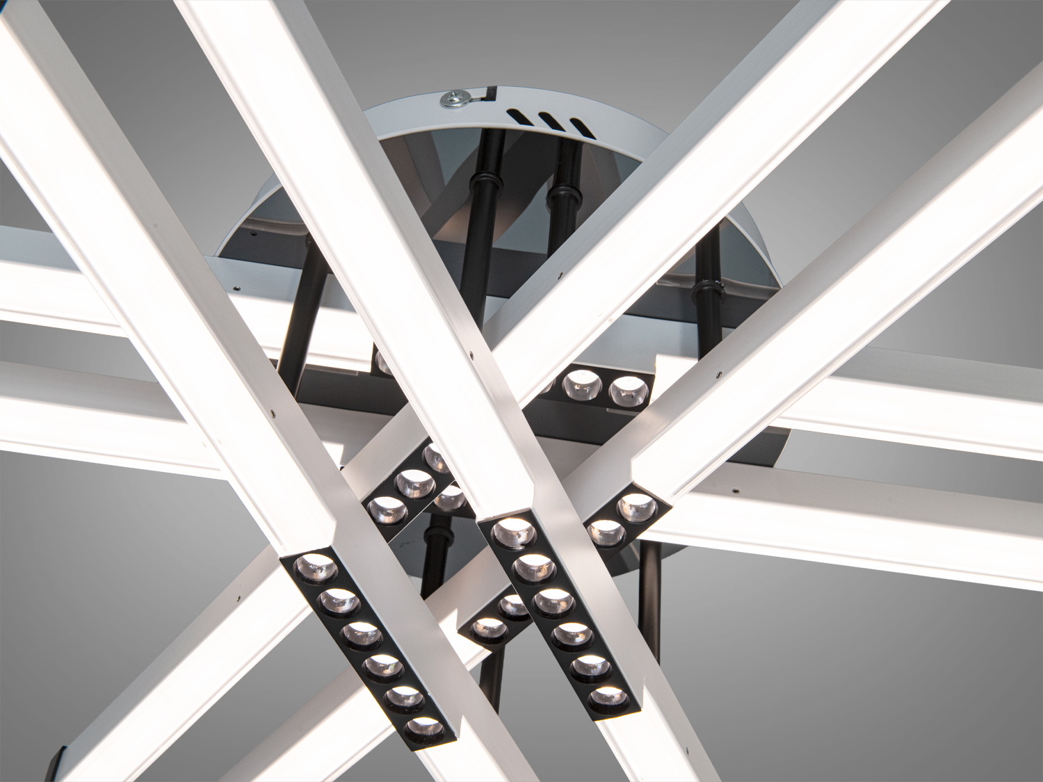 Шесть световых модулей, расположенных крест-накрест, создают динамичный световой узор. Акриловый рассеиватель обеспечивает мягкое и комфортное освещение без резких теней.