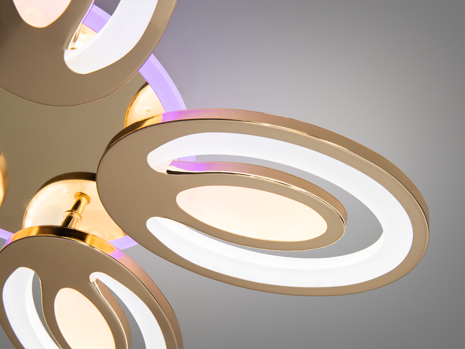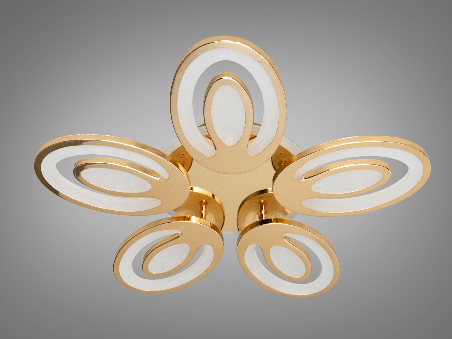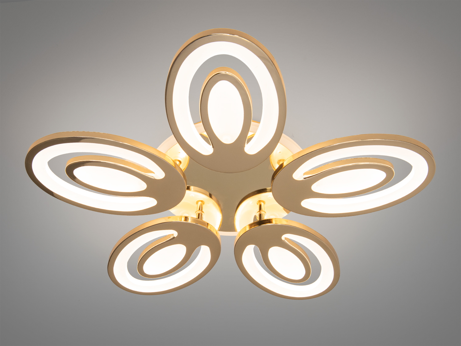 Светодиодная потолочная люстра 95Вт в изысканном золотом цвете станет ярким акцентом в вашем интерьере. Подходит для любой комнаты, будь то гостиная или спальня. Пять овальных LED-модулей создают мягкое, равномерное освещение до 16 м², обеспечивая комфортное и энергосберегающее освещение.