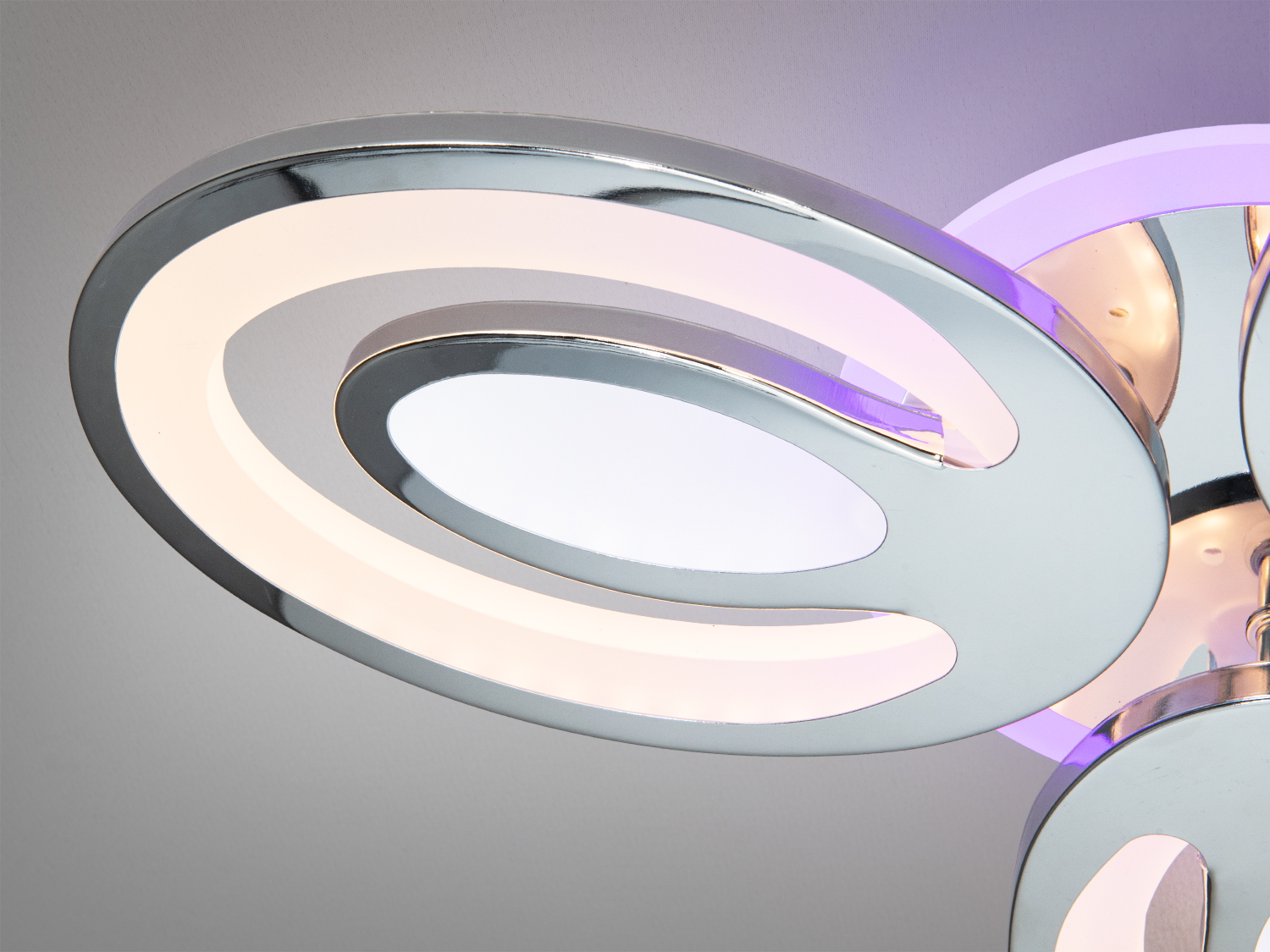 - Хромированная металлическая основа с акриловыми рассеивателями обеспечивает мягкость света и стильный вид.