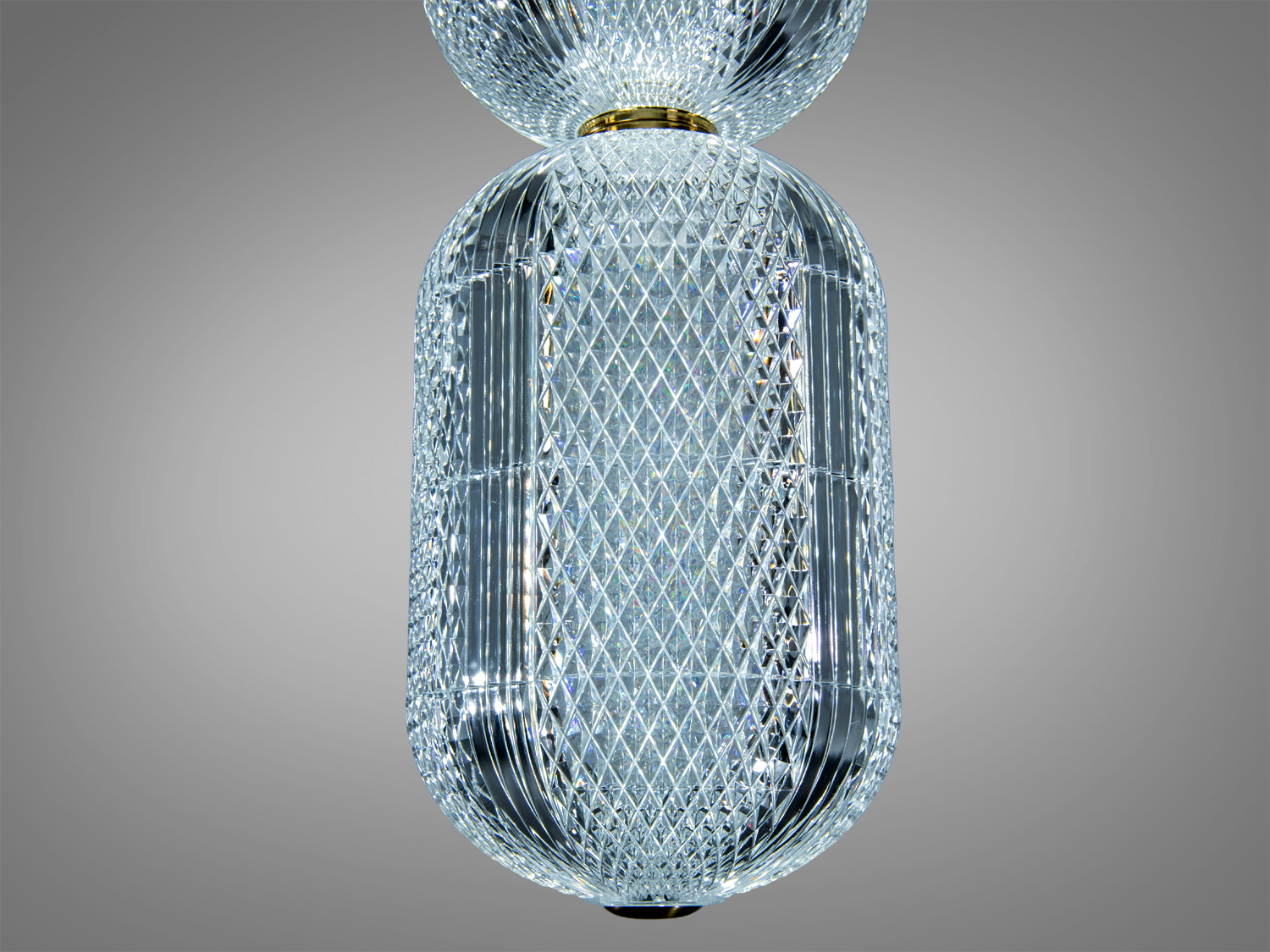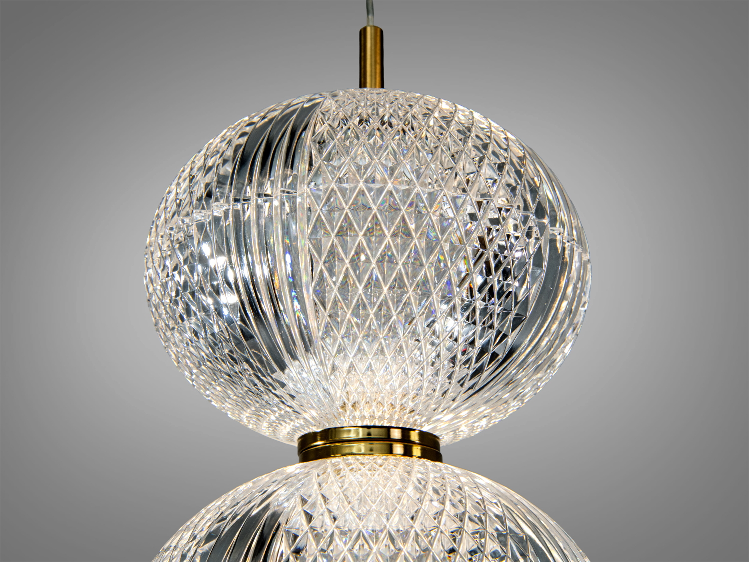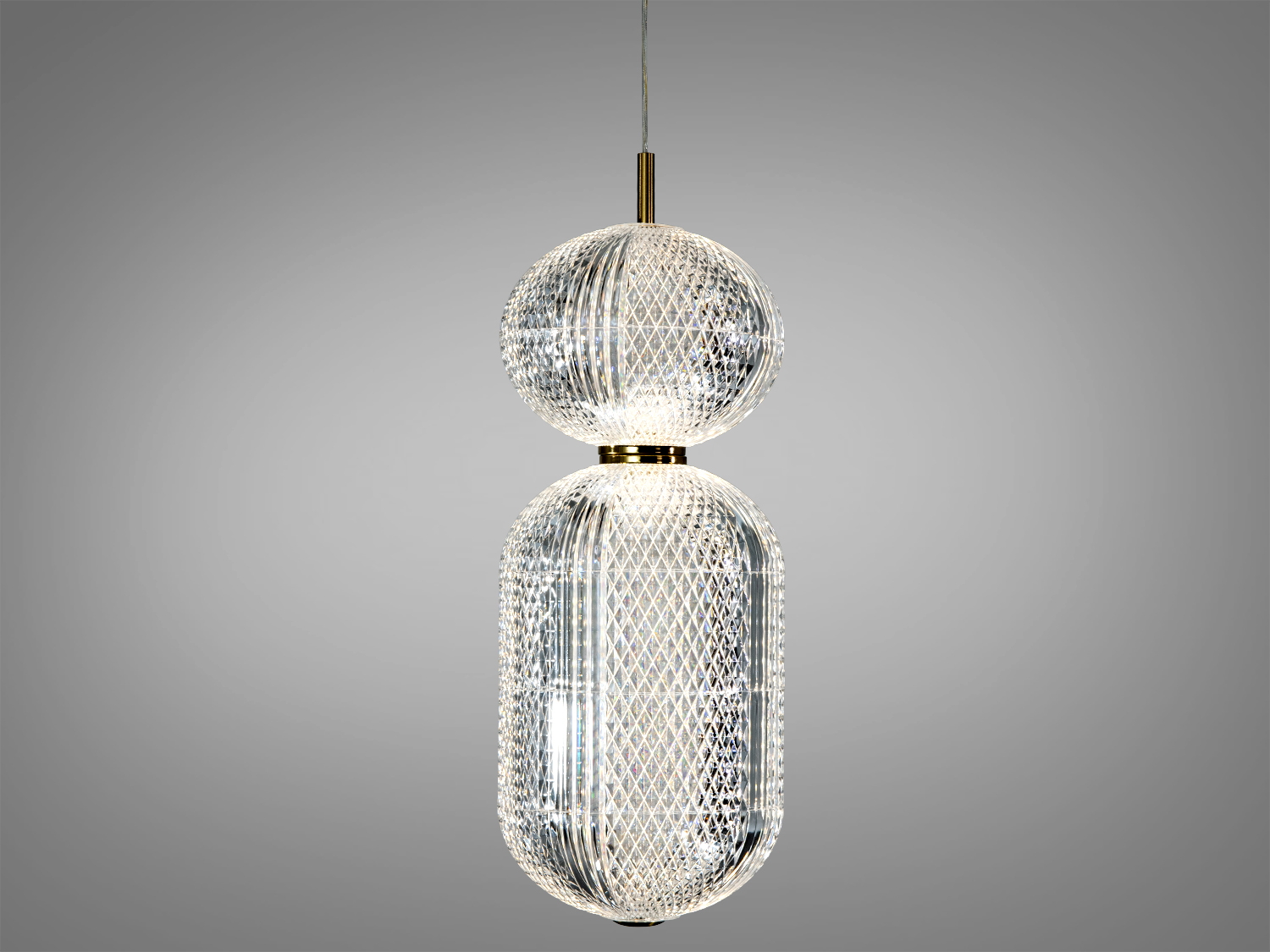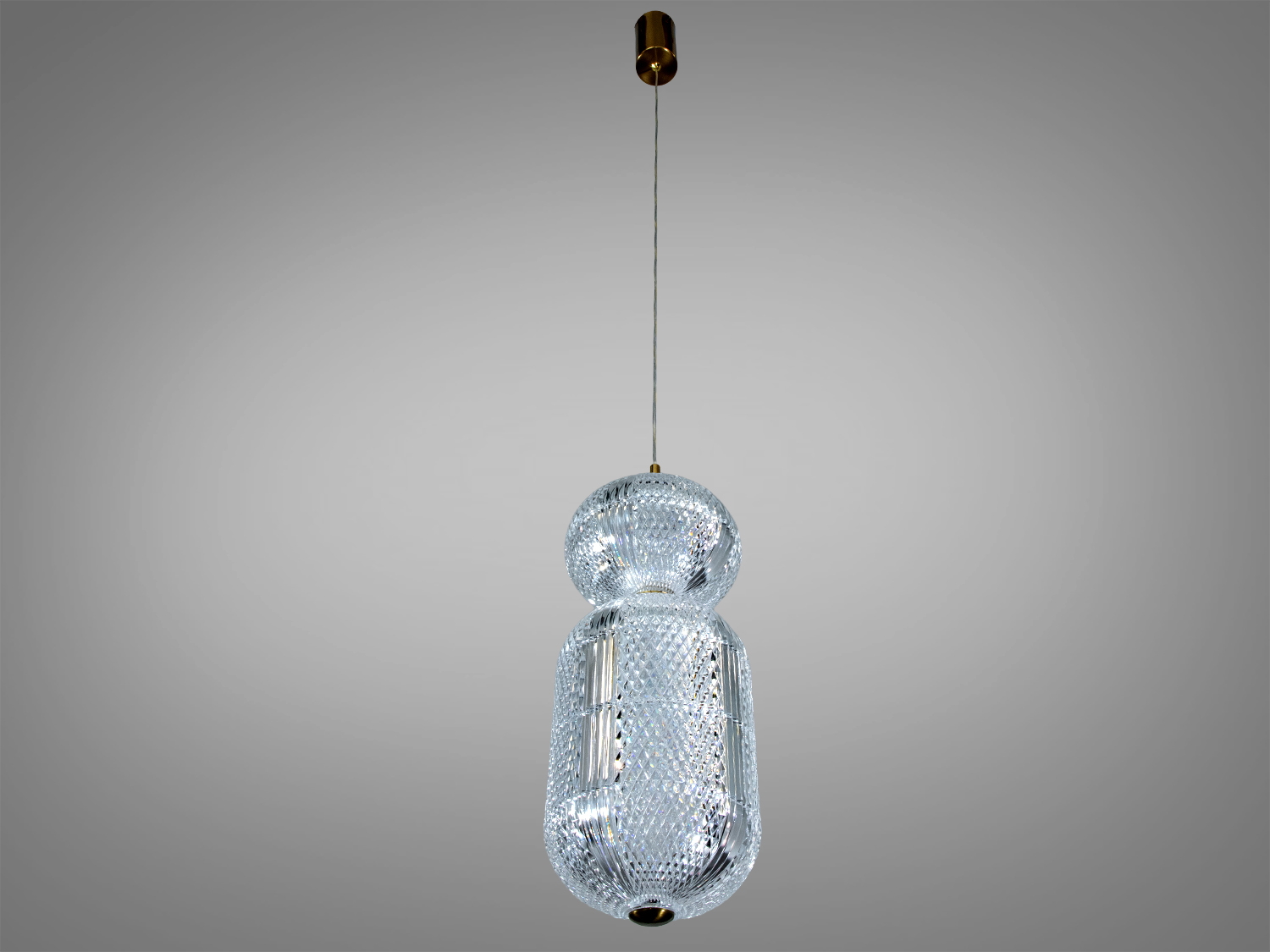 Светильник выполнен из металла и акрила, что обеспечивает ему долговечность и стильный внешний вид. Золотая окантовка и прозрачный акриловый центр добавляют интерьеру современный характер и изысканность. Свет проходит через акрил, создавая мягкое и комфортное освещение, что особенно важно для вечернего времени.