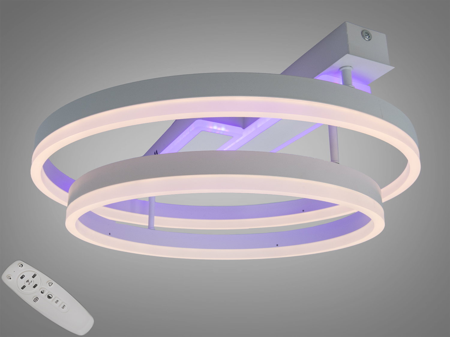 Эта модель оснащена двумя световыми модулями-колечками, которые создают объемное и равномерное освещение. Встроенный димер позволяет регулировать яркость света, создавая уютную атмосферу для любого случая.