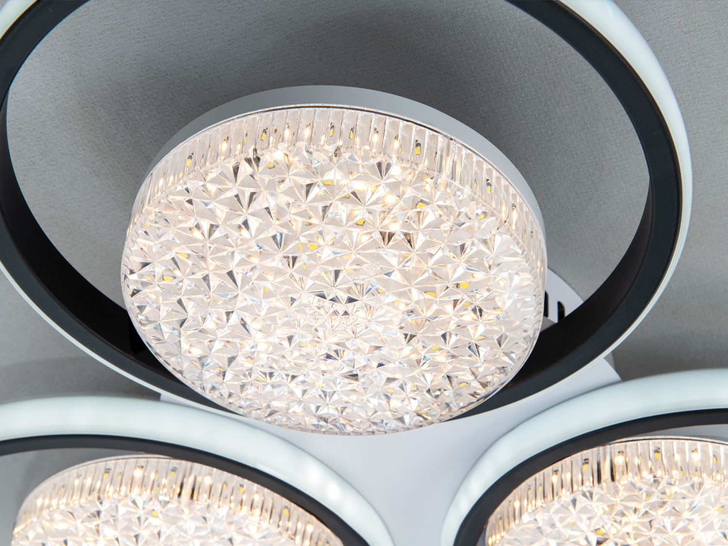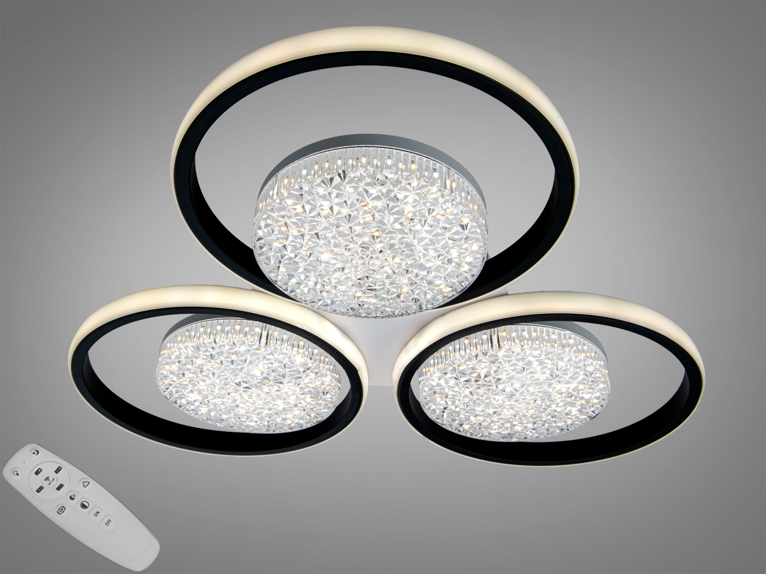 Светодиодная люстра Diasha с тремя черными кольцами — это сочетание современного дизайна и функциональности. Изящные акриловые рассеиватели с кристаллической текстурой создают мягкое и равномерное освещение, добавляя нотку роскоши в ваш интерьер.