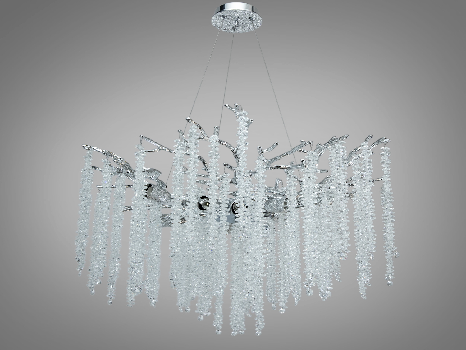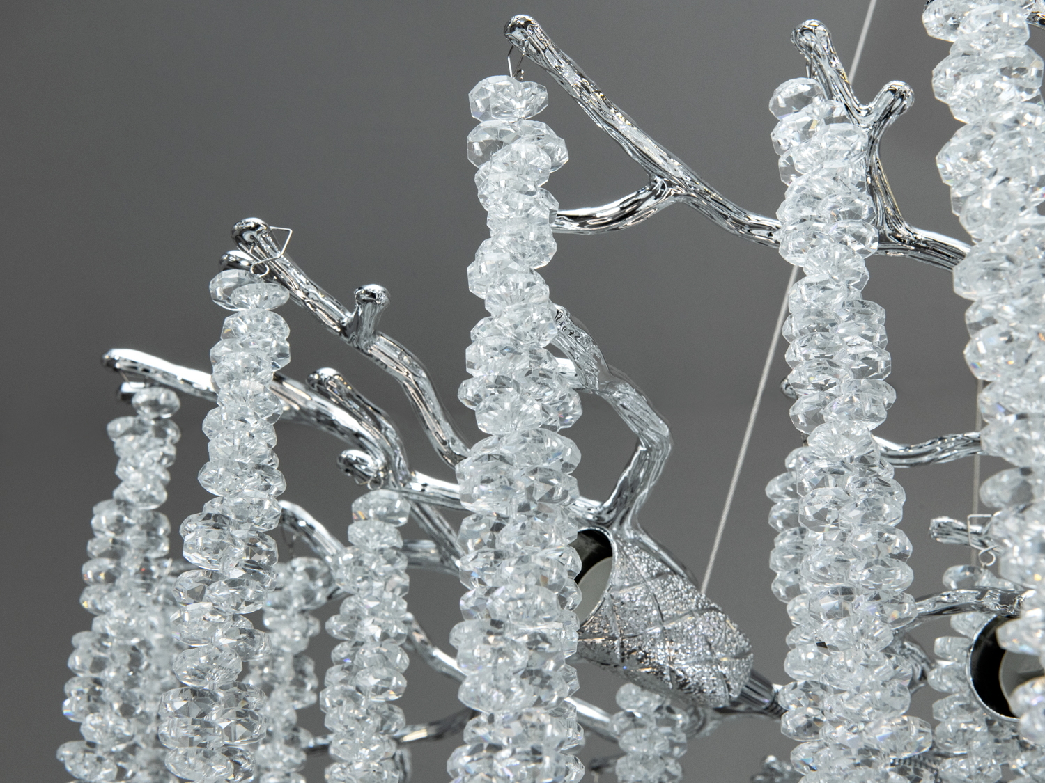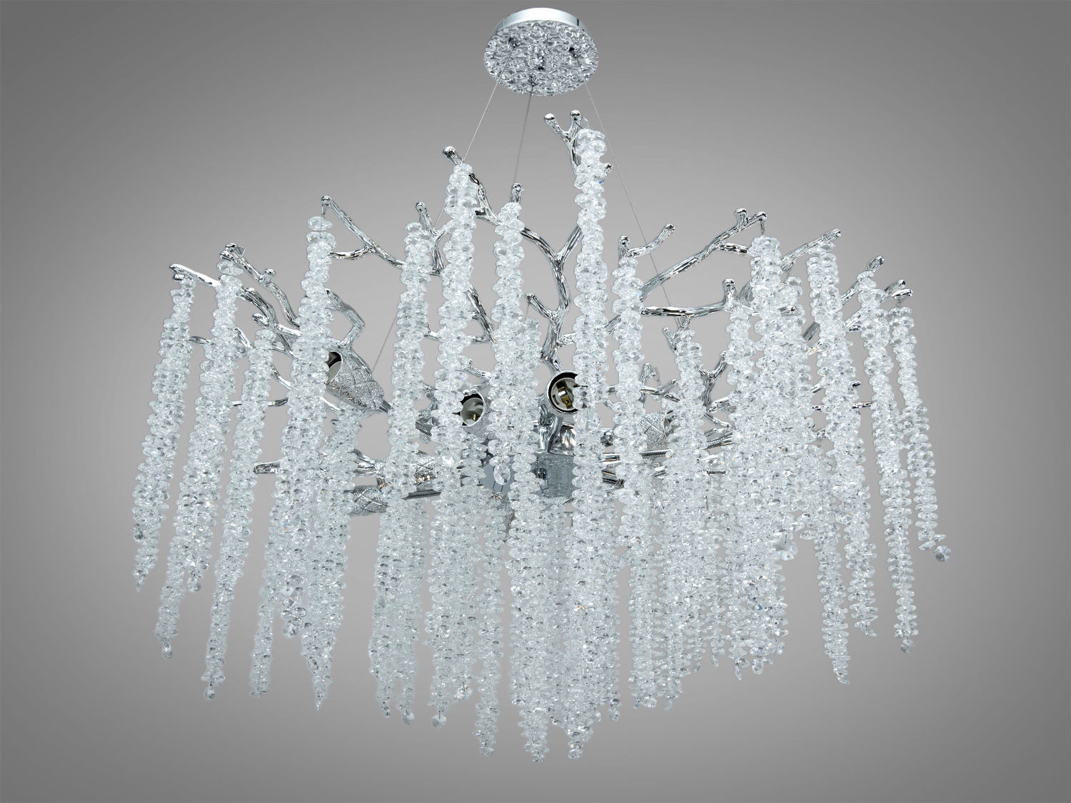 Подвесная люстра Глициния в цвете хром — это сочетание элегантности и современного стиля. Благодаря выразительному каскаду прозрачных хрустальных подвесок, люстра создаёт акцент в интерьере, напоминающий ветви и гроздья цветов. Хромированное покрытие усиливает блики и чистоту света, гармонично вписываясь как в современные, так и в классические интерьеры.