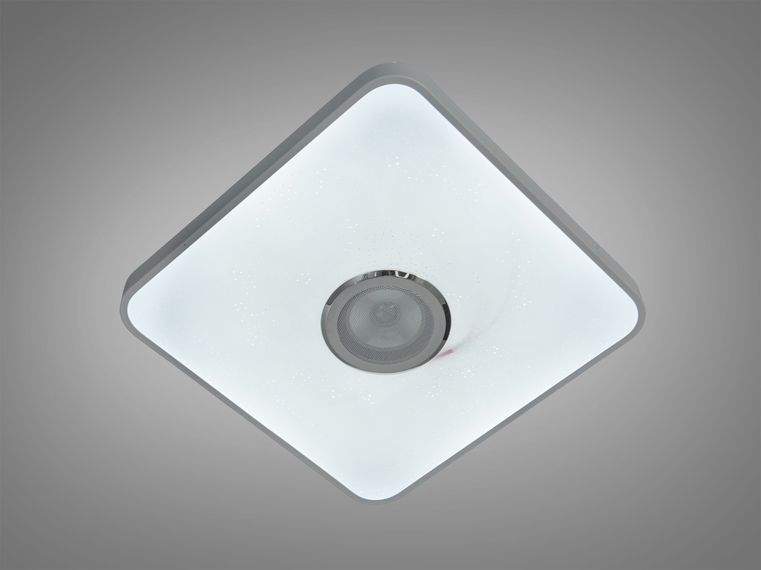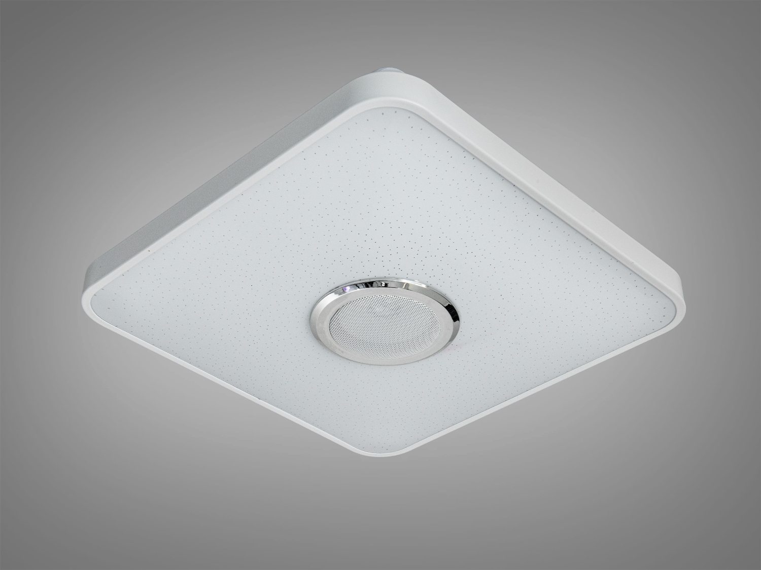 Люстра выполнена в аккуратном квадратном формате 400x400 мм с лаконичным белым корпусом. Центрально расположенный динамик подчёркивает смарт-возможности и сохраняет минималистичный вид. Матовый рассеиватель формирует комфортное свечение и снижает блики, что уместно для спальни или гостиной.