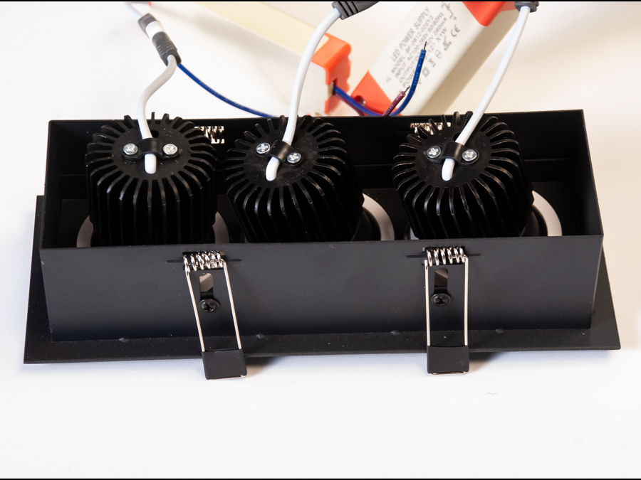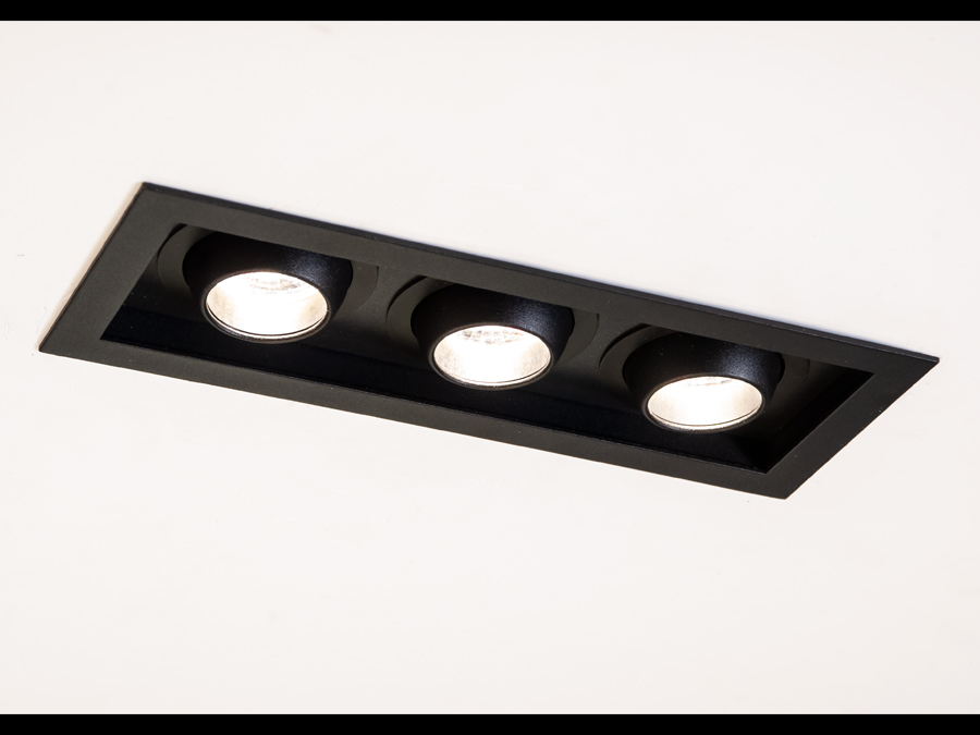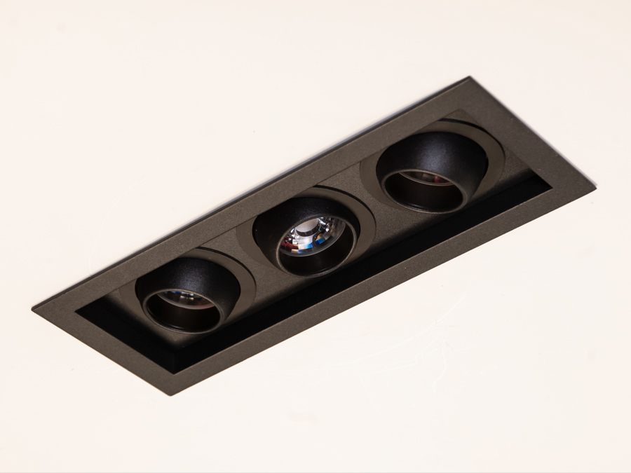 Врізний, алюмінієвий, поворотний триточковий світильник, чорний