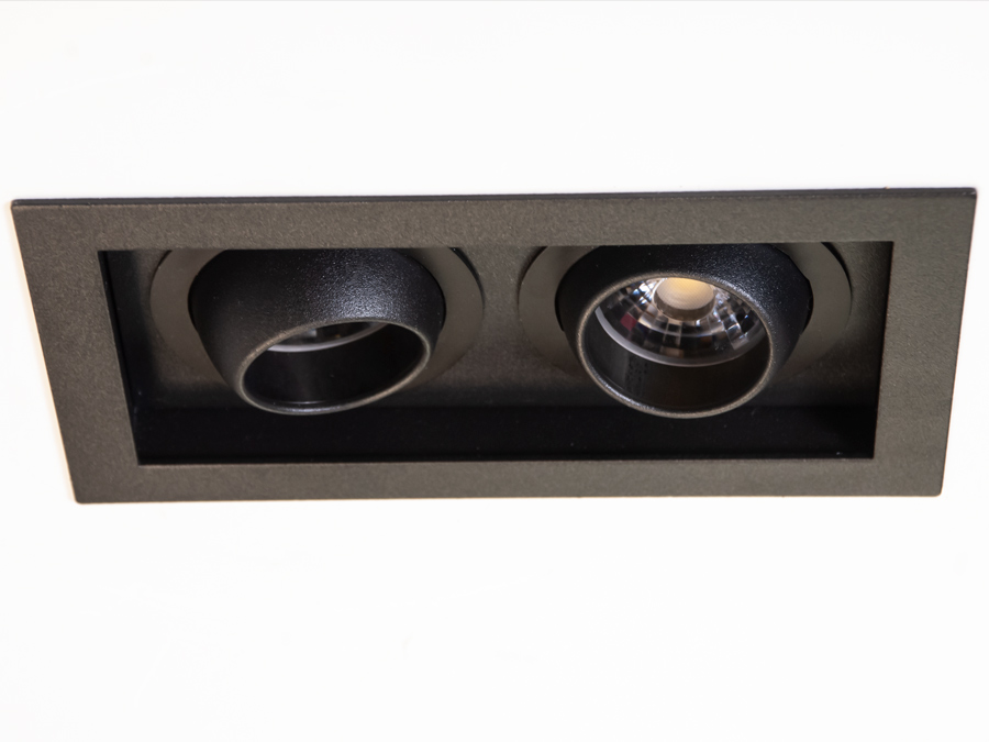 Високоефективний, врізний, двоточковий поворотний світильник для ванної кімнати, серія "Аluminium", чорного кольру