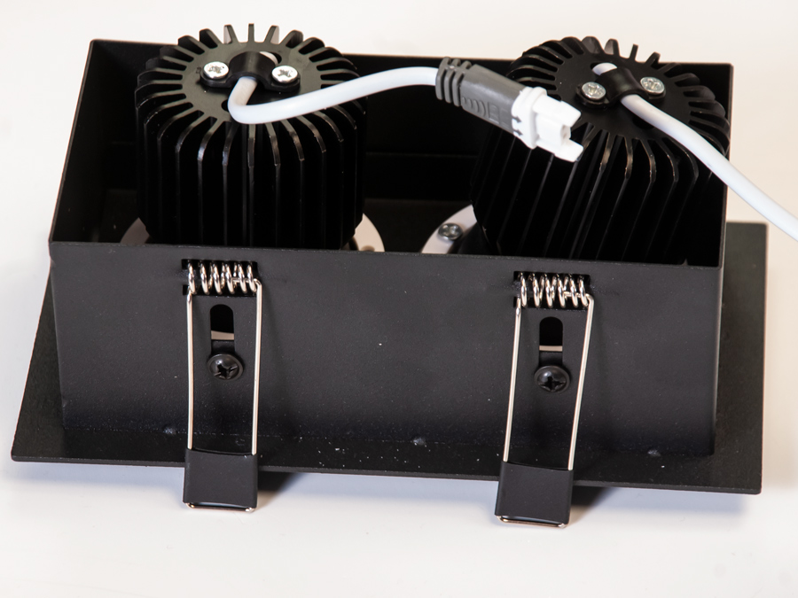 Цей алюмінієвий здвоєний врізний поворотний точковий світильник під гіпсокартонну стелю від ТМ «Діаша» стане чудовим доповненням до інтер'єру, який прагне відображати сучасні тенденції та стиль. Його унікальна геометрична форма з чіткими лініями та прямокутною базою додає простору виразності та графічного ритму, в той же час маючи практичне застосування, таке як поворотність окремо кожного із двох світильників.