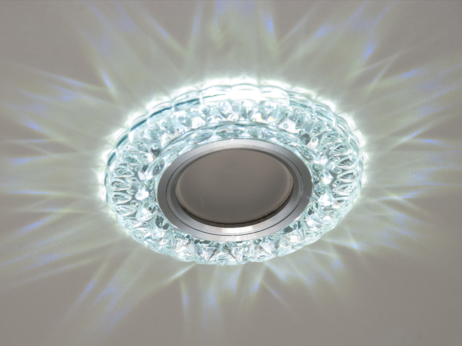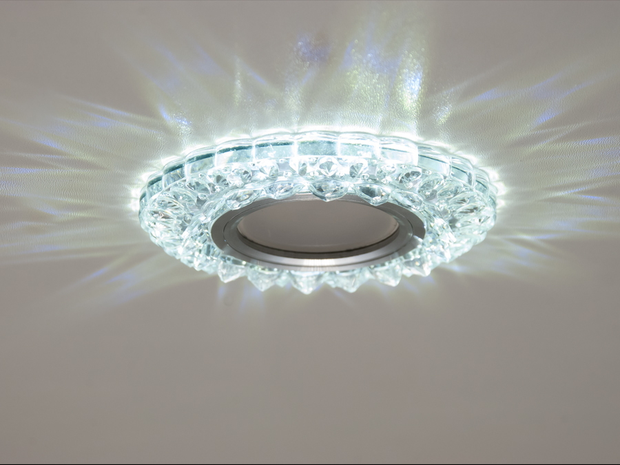 Особливістю цього світильника є вбудована LED підсвітка потужністю 3W з холодним білим світлом (6400K), яка додає стильний акцент у будь-який інтер'єр. Установка здійснюється за допомогою пружинного кріплення, що робить монтаж швидким і простим.