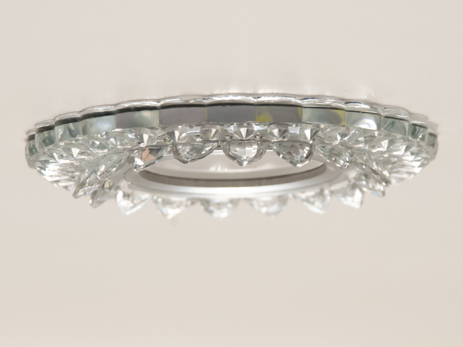 Світильник виконаний з міцних матеріалів: каркас з металу та плафон зі скла забезпечують надійність і довговічність. Діаметр світильника становить 9.5 см, а висота всього 1 см, що робить його компактним і непомітним на стелі.