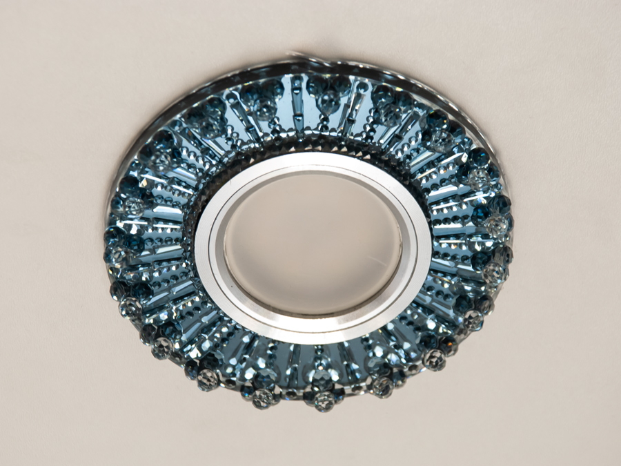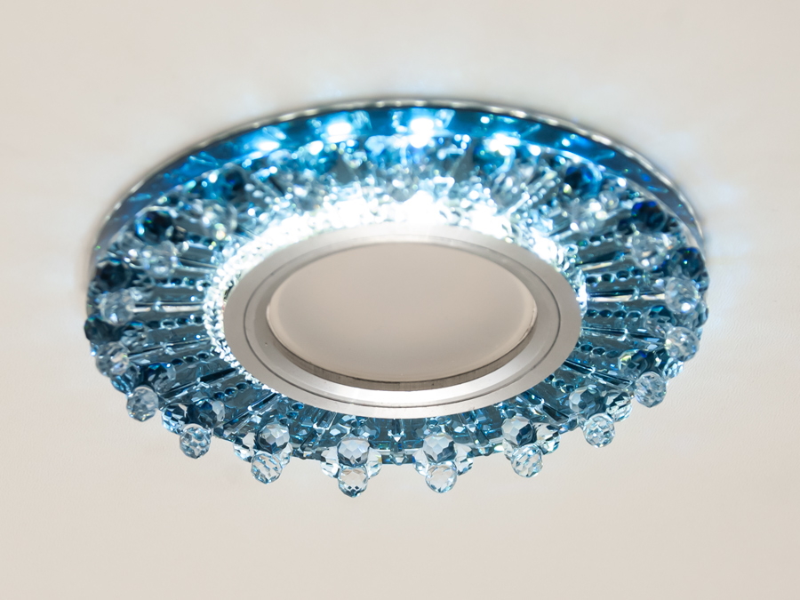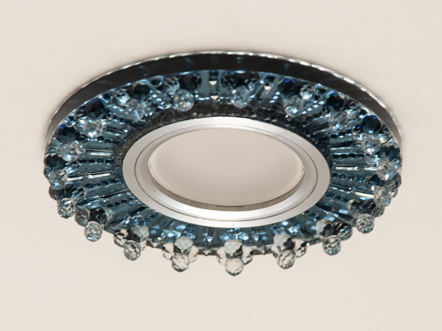 Кришталеві елементи не лише прикрашають світильник, а й ефективно розсіюють світло, створюючи враження тепла та свіжості. Такий світильник чудово підійде для вітальні, ванної, дитячої кімнати, офісу чи кафе.