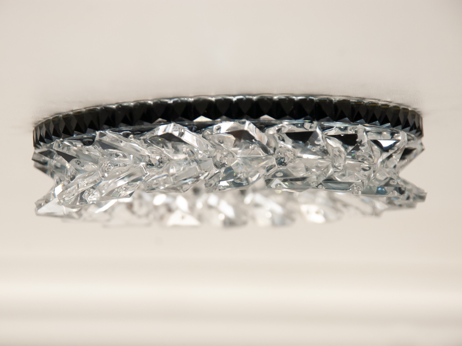 Світильник виготовлений з високоякісного металу та оздоблений акриловою смолою, що імітує кришталеву прозорість. Це дозволяє світлу м'яко розсіюватися, створюючи унікальні світлові ефекти на навколишніх поверхнях.