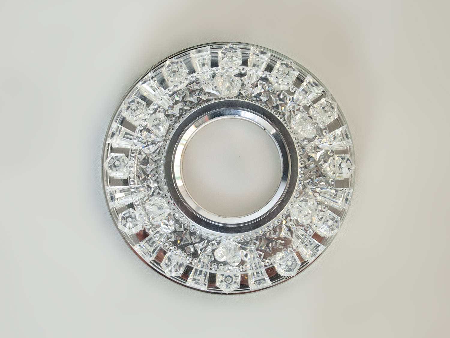 Конструкція світильника складається з двох частин: декоративної та вбудованої. Декоративна частина виконана з акрилової смоли з оптичними характеристиками, близькими до кришталю, що надає виробу вишуканого вигляду.