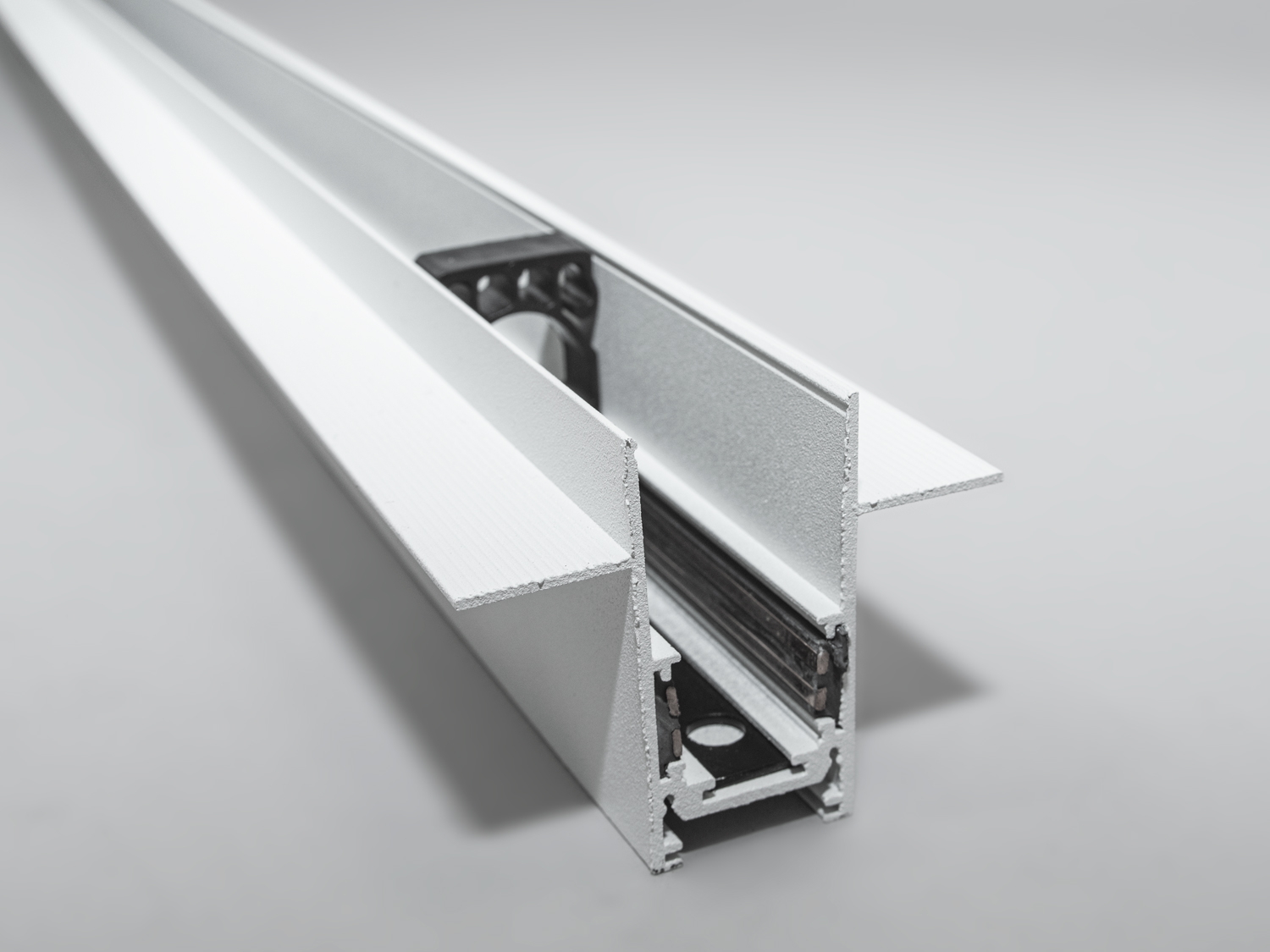 Шинопровід для магнітної трекової системи спеціально розроблений для прихованого монтажу. Трек не виступає з поверхні стелі або стіни.