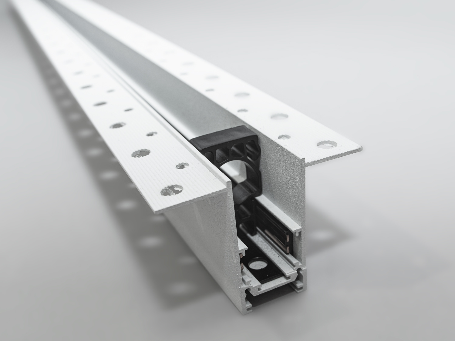 Шинопровід для магнітної трекової системи спеціально розроблений для прихованого монтажу. Трек не виступає з поверхні стелі або стіни.