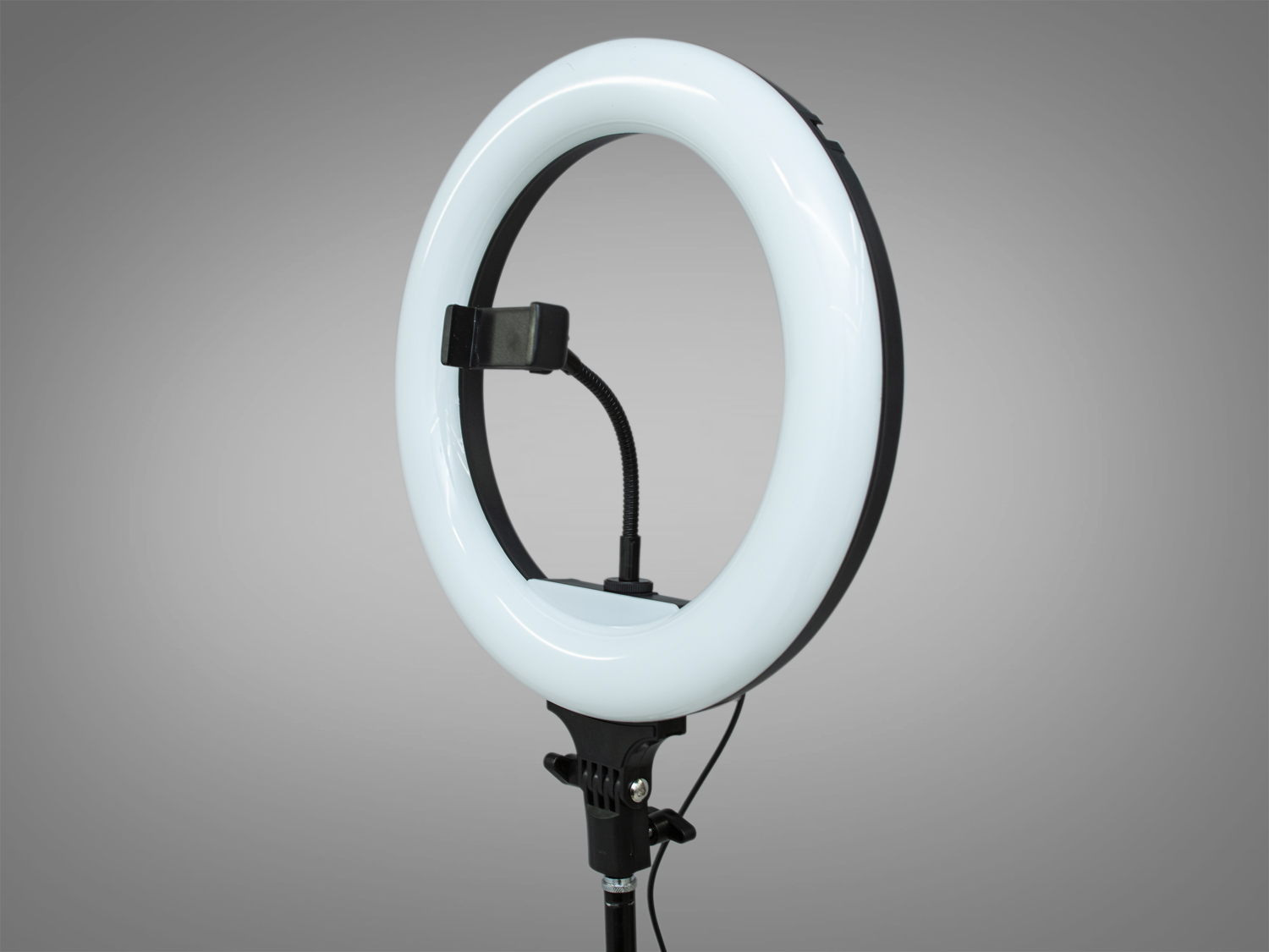 Світлодіодна селфі лампа діаметром 32 см — ідеальний інструмент для створення професійних фото та відео. Вона оснащена яскравими світлодіодами та розсіювачем з ABS пластику, забезпечуючи м'яке та приємне освітлення.