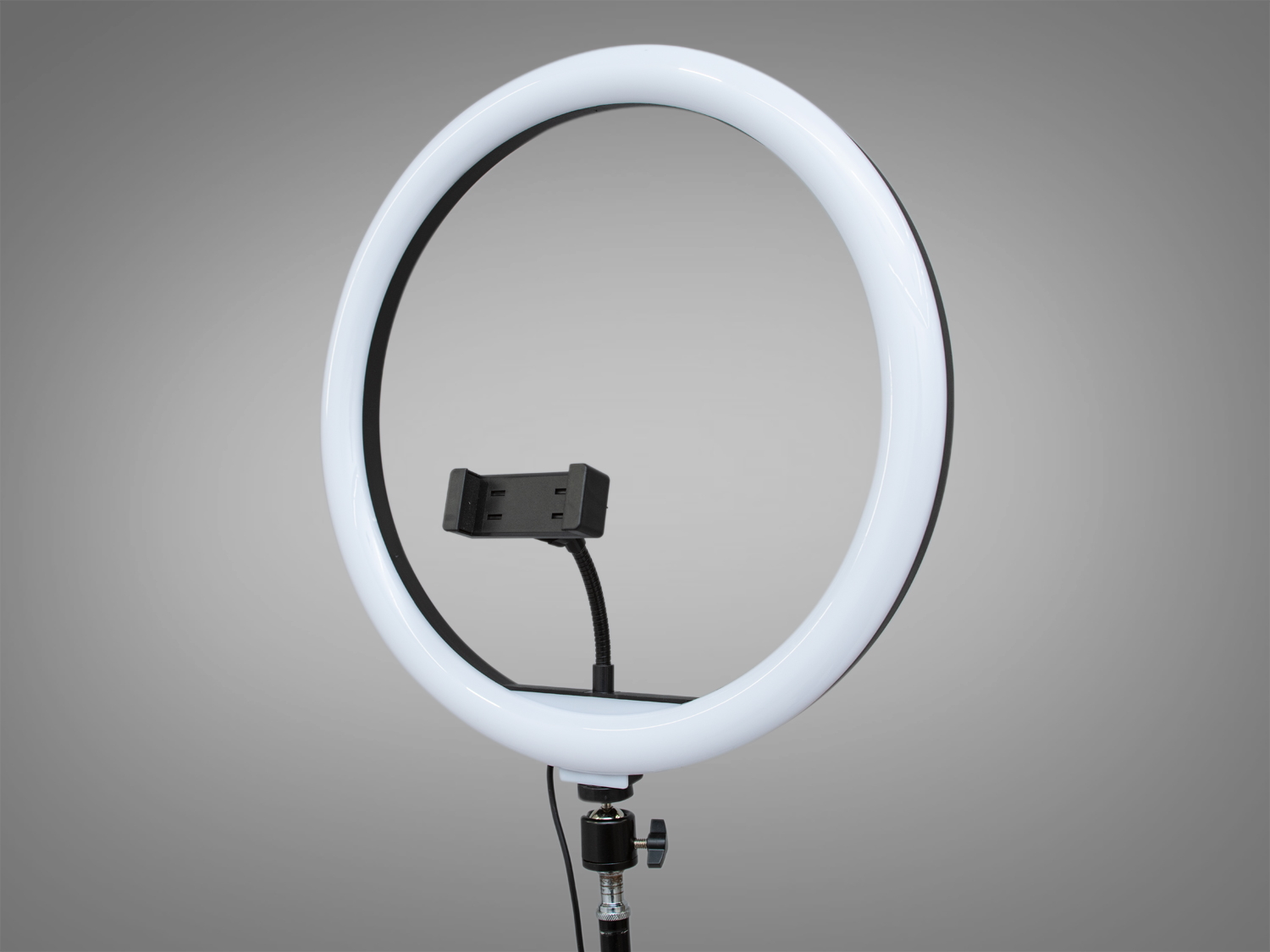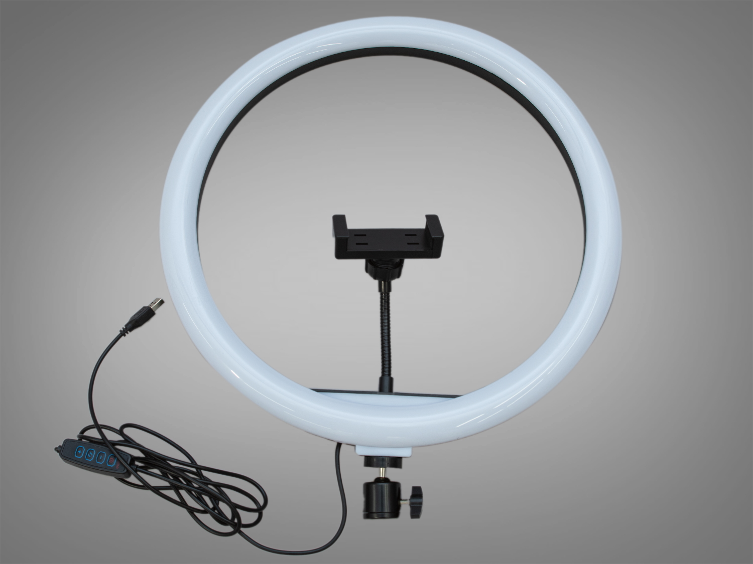 Лампа оснащена яскравими світлодіодами та розсіювачем з ABS пластику, що забезпечує довговічність та високу якість освітлення. Діаметр кільця у 36 см дозволяє рівномірно освітити портрет.