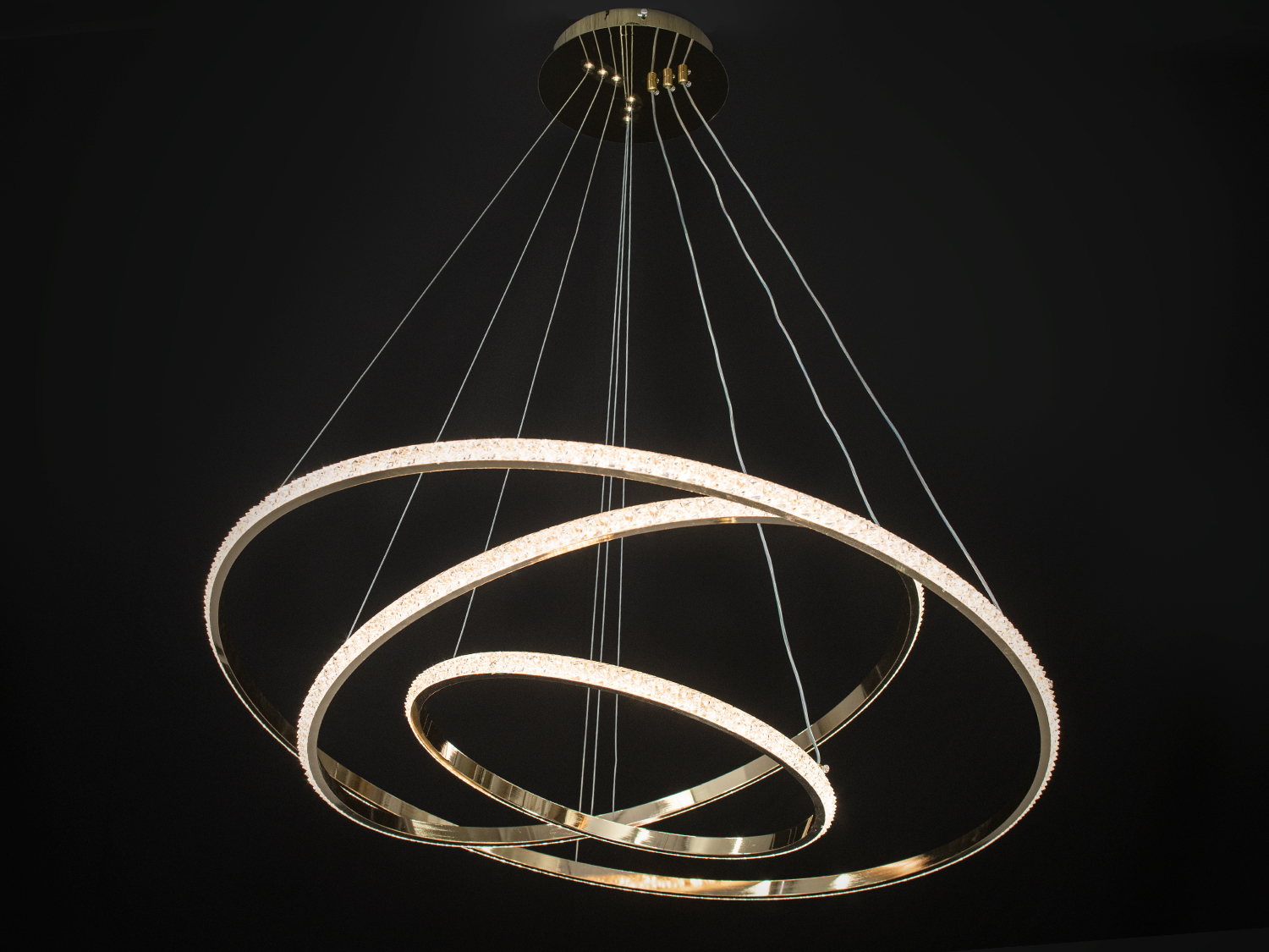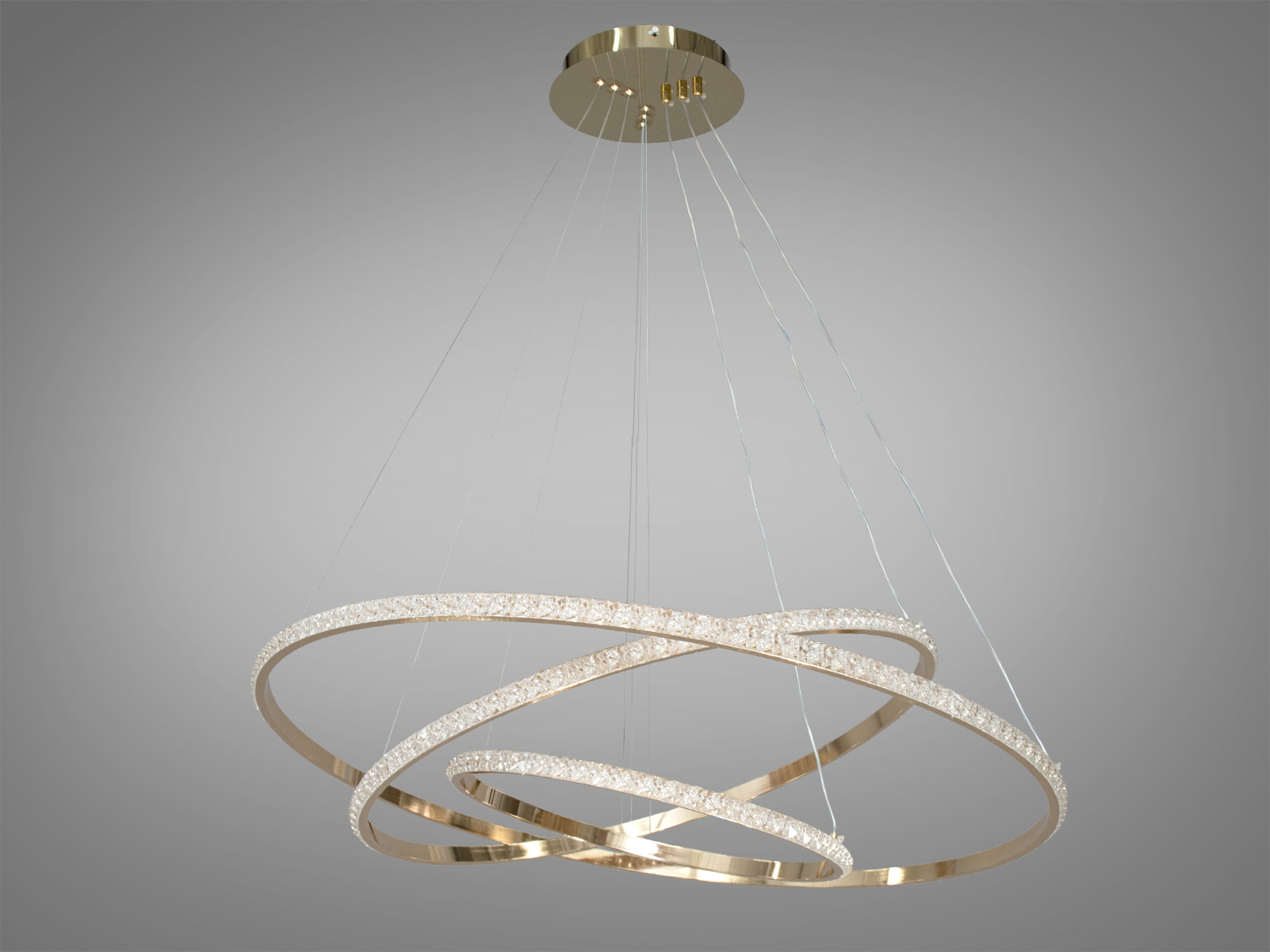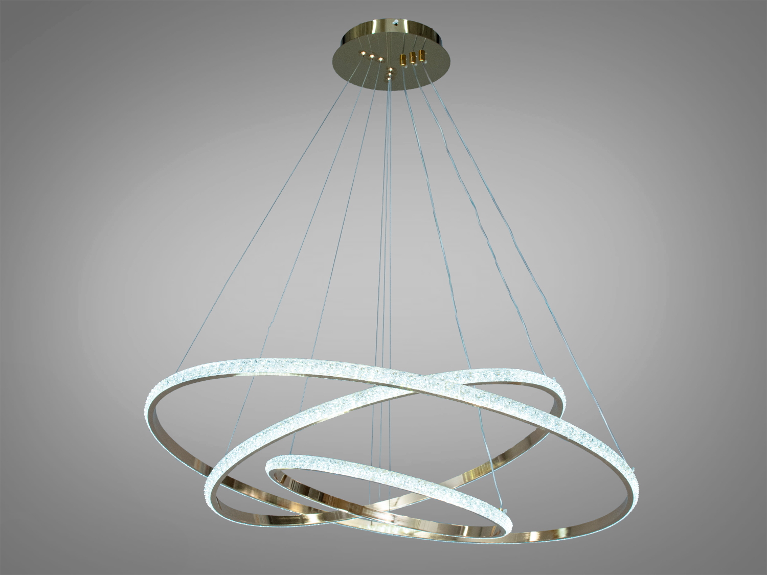 Сучасна LED люстра "Кільця" — це стильний елемент інтер'єру, який додасть вишуканості будь-якому дому. Завдяки своєму золотистому кольору та елегантному дизайну, вона іпідійде для вітальні або кухні.