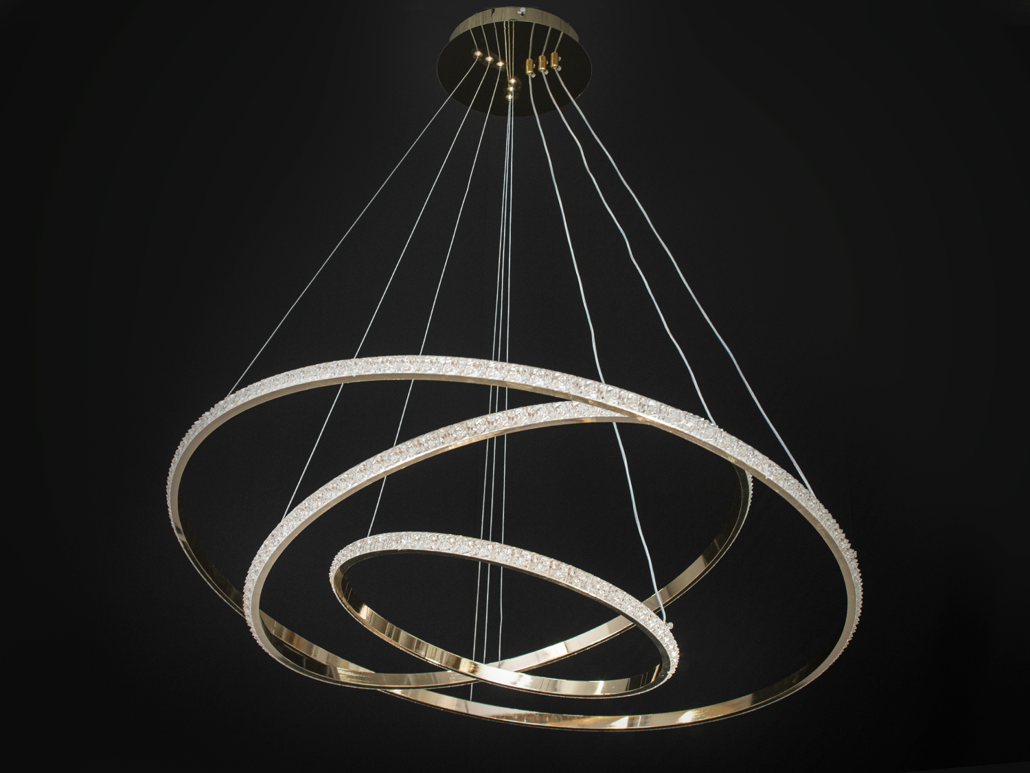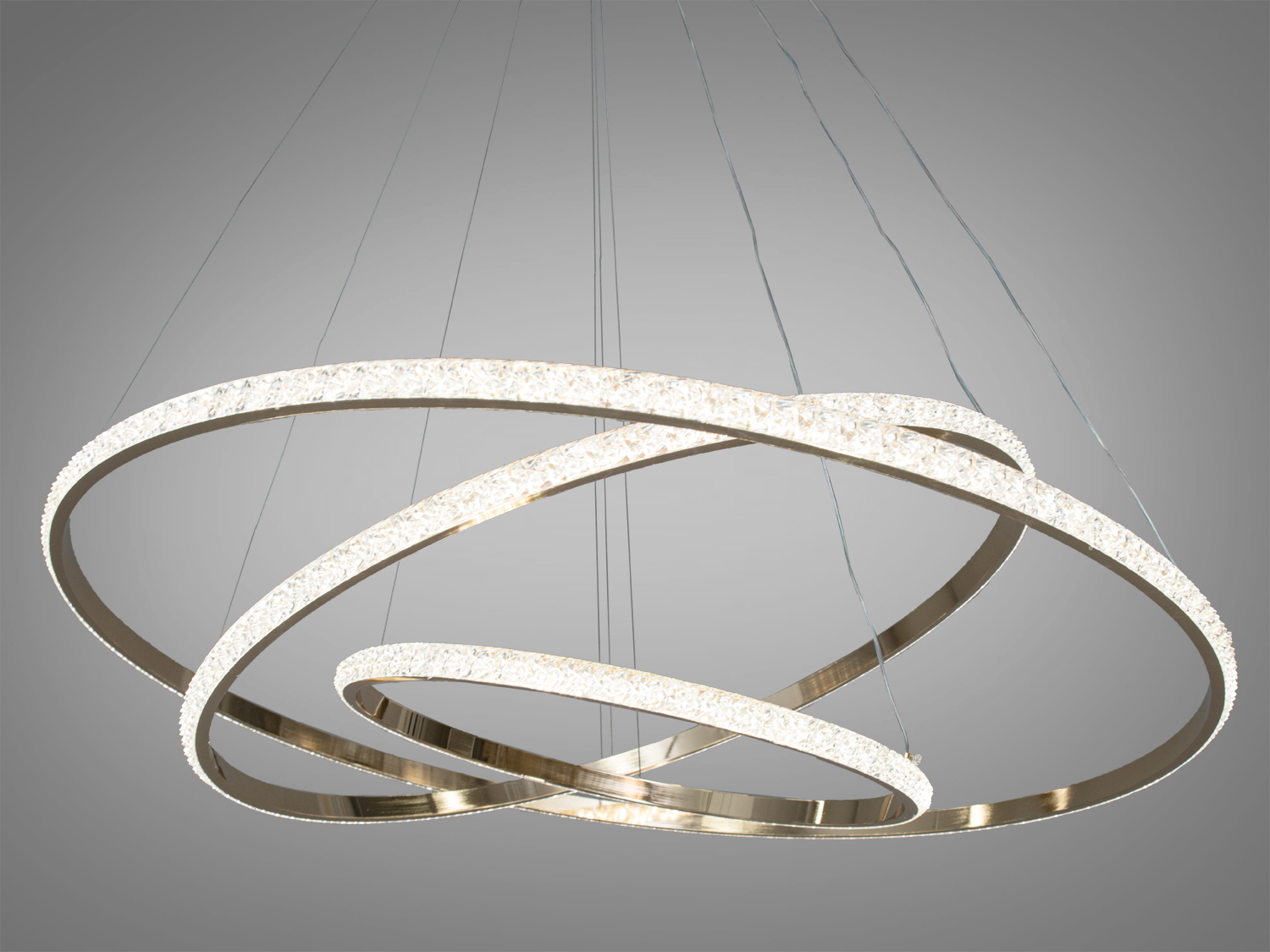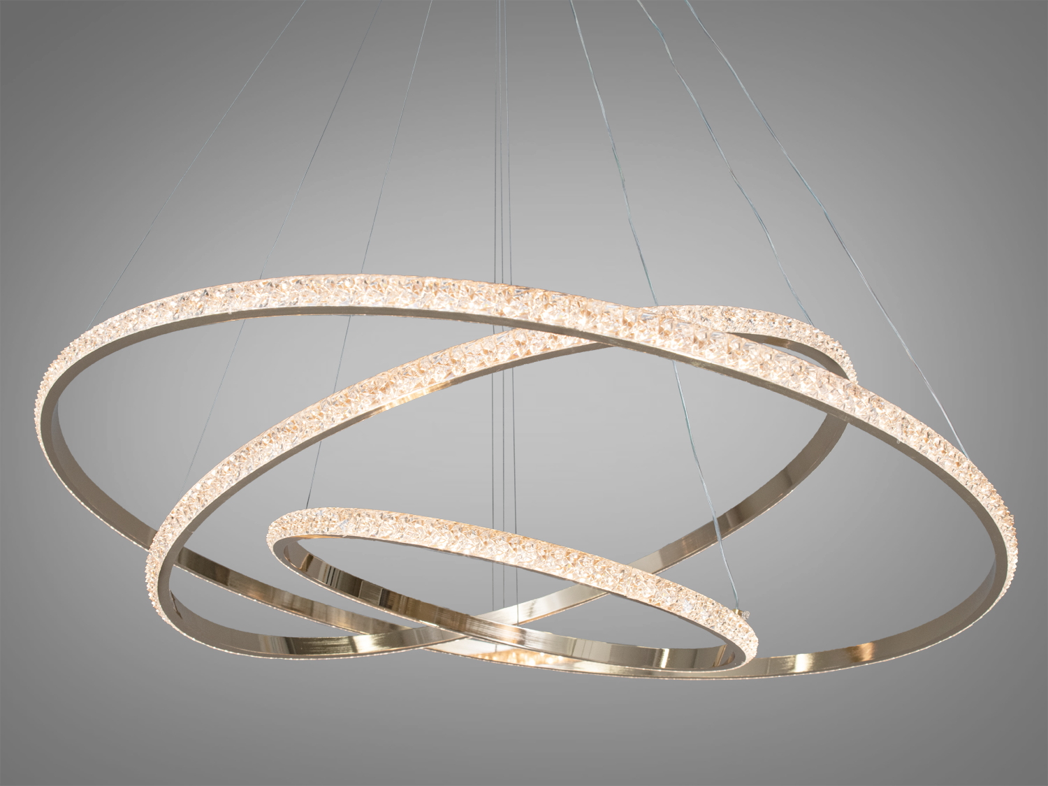 Сучасна LED люстра "Кільця" — це стильний елемент інтер'єру, який додасть вишуканості будь-якому дому. Завдяки своєму золотистому кольору та елегантному дизайну, вона іпідійде для вітальні або кухні.