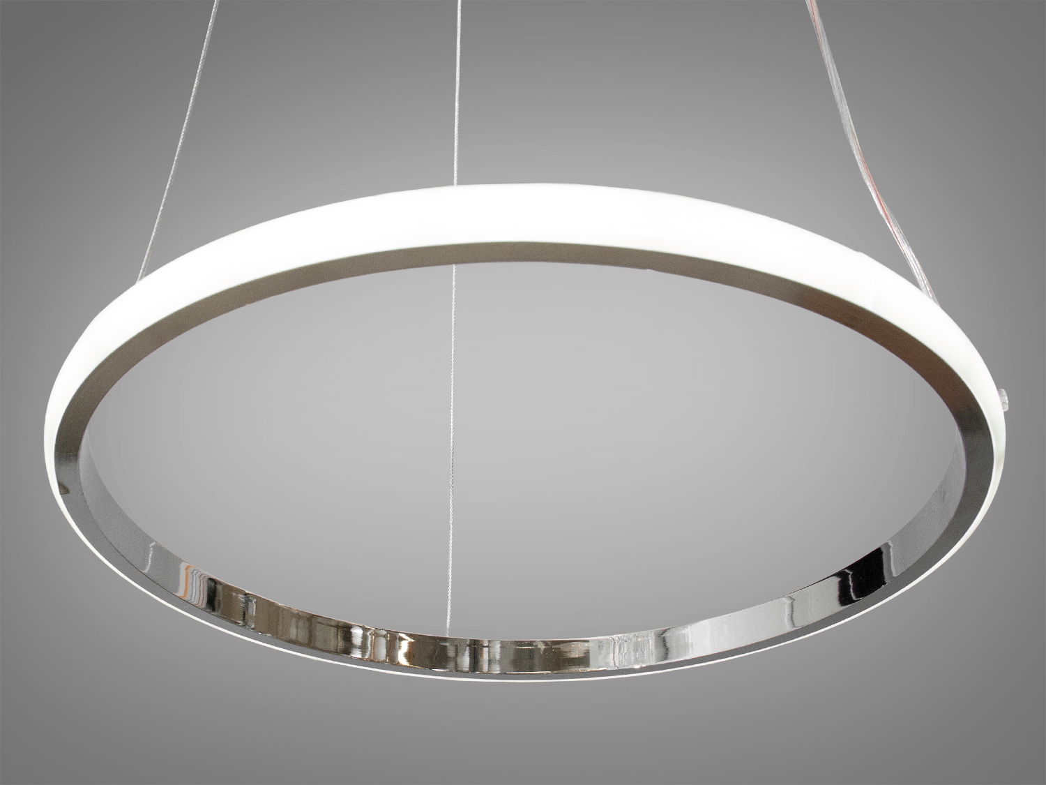 Люстра має елегантний круглий дизайн з металевим корпусом та підвісною системою монтажу. Хромоване покриття додає розкішного вигляду, роблячи її відмінним вибором для сучасних інтер'єрів.