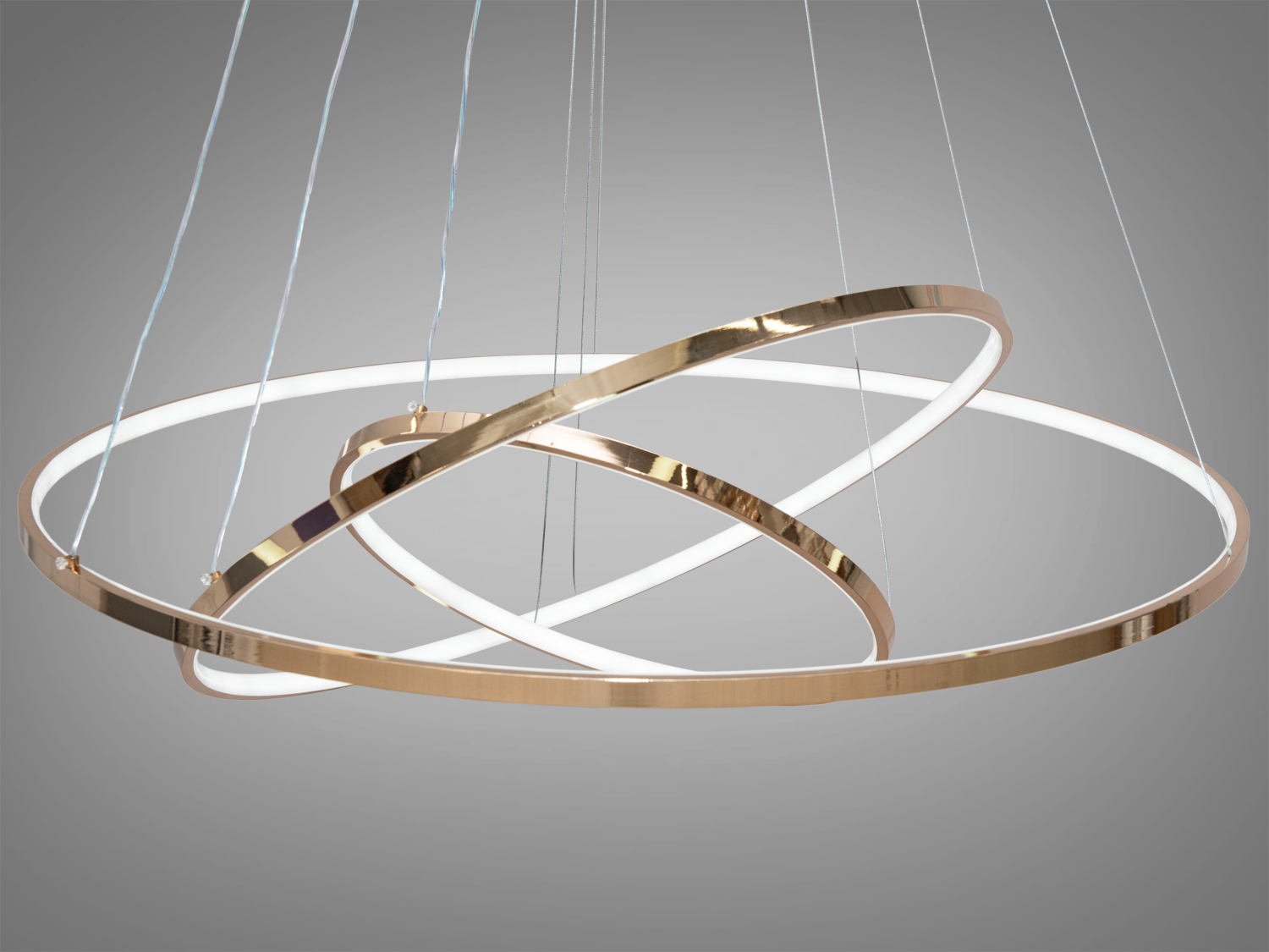 Люстра виготовлена з металу та силікону. Алюмінієві кільця міцні, не іржавіють і добре відводять тепло, а силіконовий розсіювач м'яко розподіляє світло, створюючи атмосферу затишку.