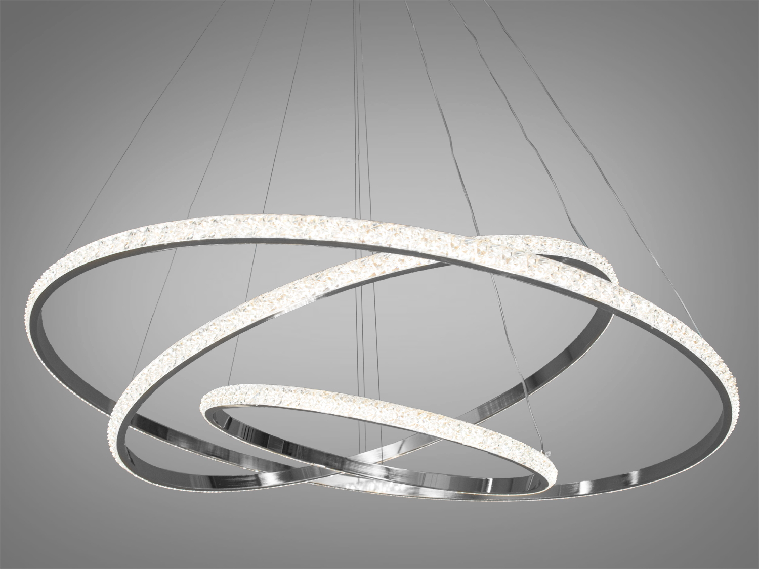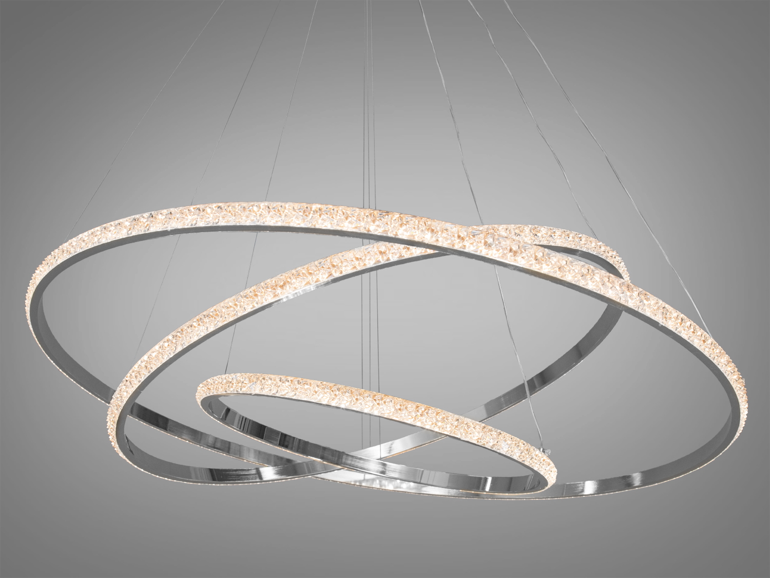 Кільця люстри виконані з алюмінію зі силіконовим розсіювачем. Цей матеріал не іржавіє і добре відводить тепло, що робить його гарним вибором для світлодіодних люстр. Хромування забезпечує довговічність та стійкість покриття.