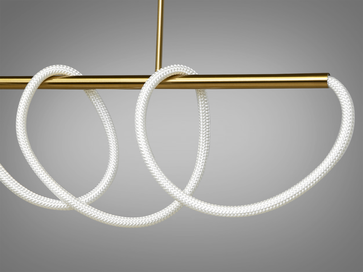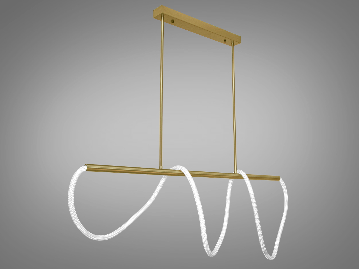 Люстра виготовлена з високоякісного металу та силікону. Гнучка силіконова трубка, обгорнута натуральним текстилем, надає світильнику оригінальний вигляд і забезпечує довговічність. Металева основа надійно фіксує люстру на стелі.