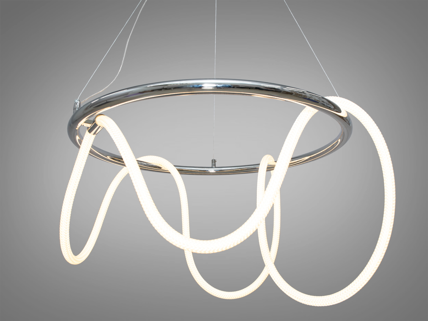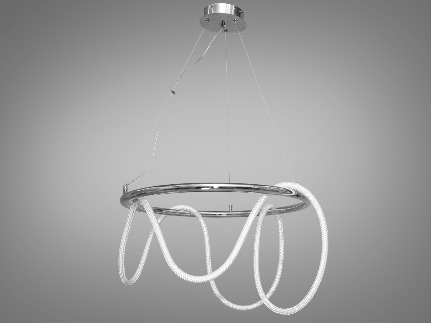Декоративна світлодіодна люстра серії "Ropelight" — це сучасне рішення для вашого інтер'єру. З вишуканим дизайном та хромованим оздобленням, вона стане центральним елементом будь-якої кімнати, чи то вітальня, їдальня або кухня.
