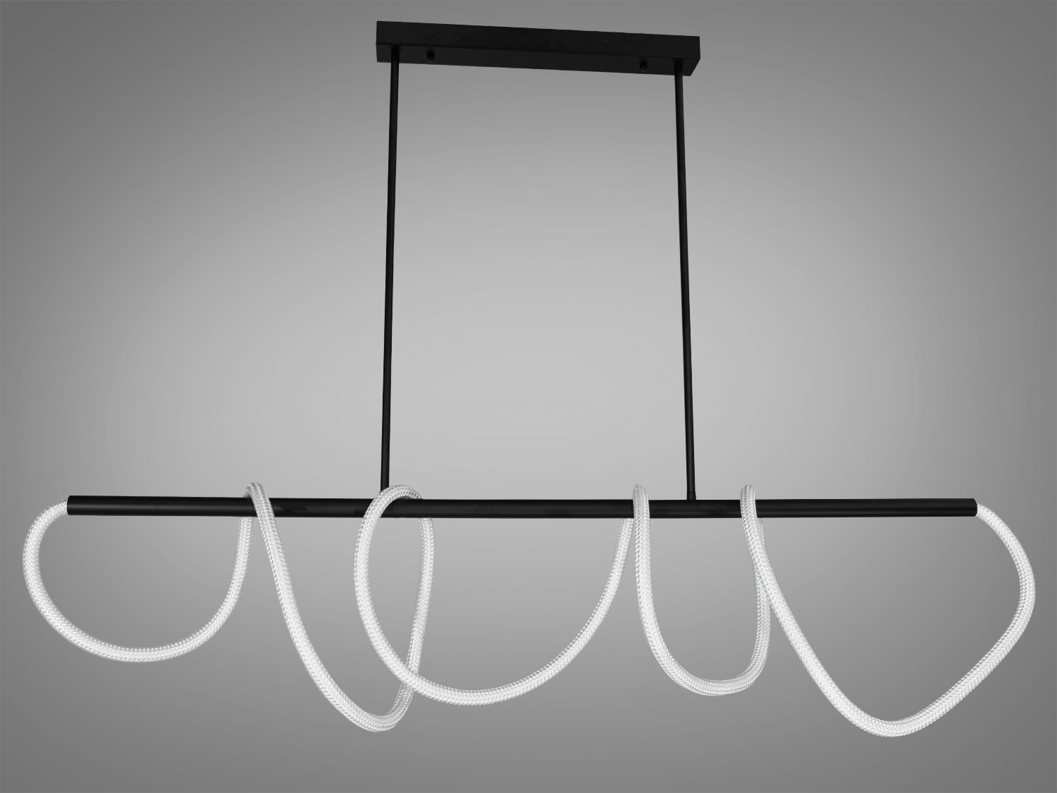Люстра виготовлена з якісних матеріалів: металевий каркас і силіконові плафони, що гарантує довговічність і стійкість до зношування. Гнучка силіконова трубка, обгорнута натуральним текстилем, створює унікальні хвилясті форми світла, додаючи родзинки вашому інтер'єру.
