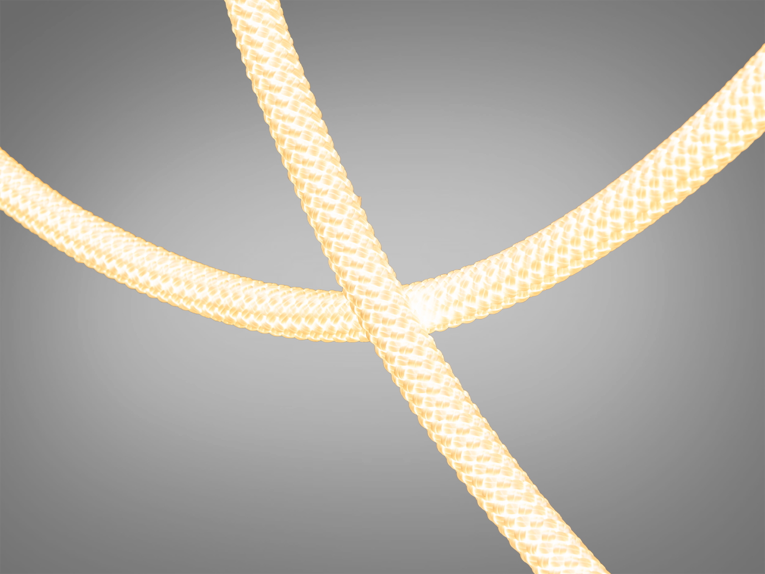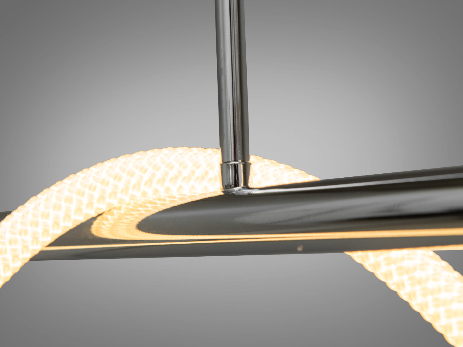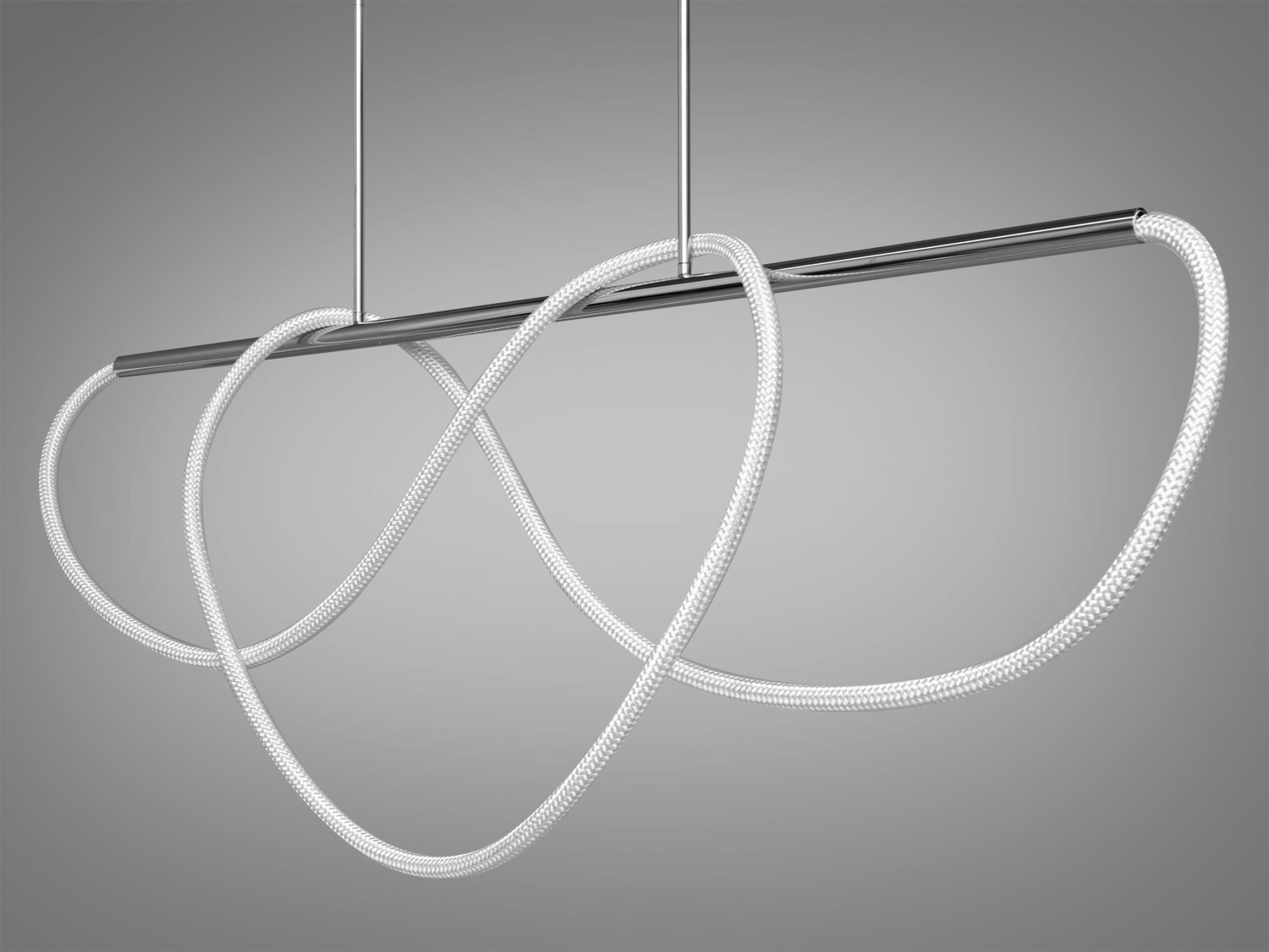 Висота люстри становить 150 см, а мінімальна висота підвісу — 100 см. Гнучка силіконова трубка, обгорнена текстилем, створює хвилеподібні форми, що надає унікальний вигляд та забезпечує довговічність.
