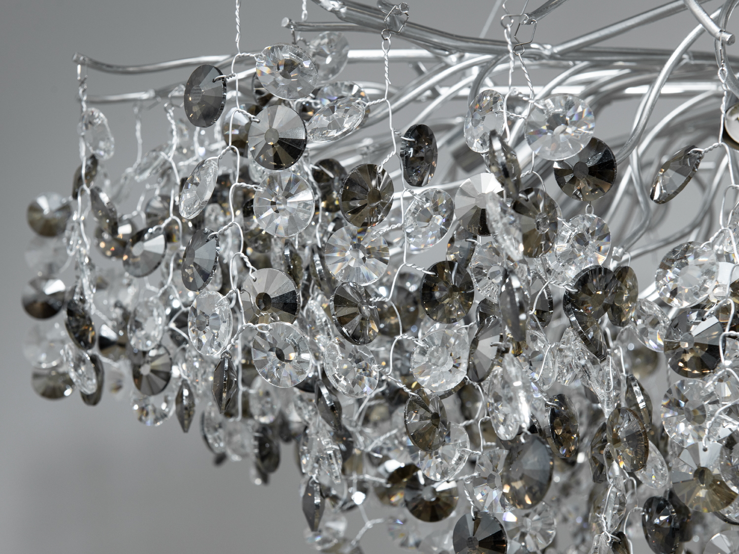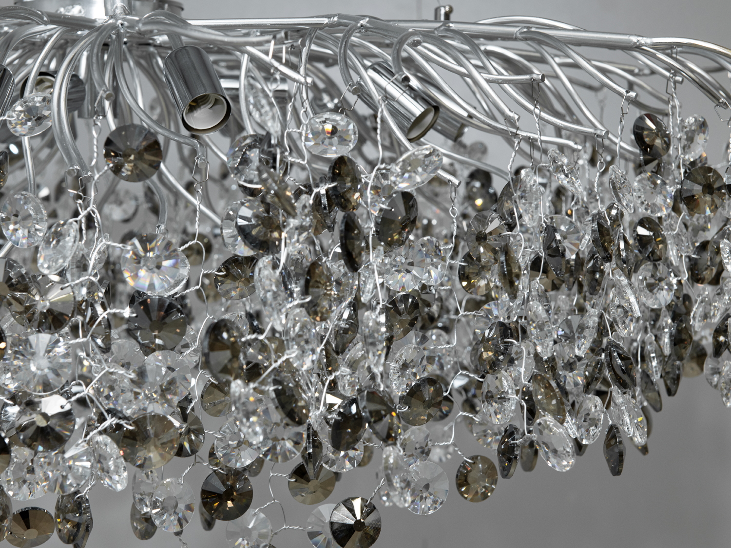 Виготовлена з міцного алюмінію з хромованим покриттям, ця люстра не лише стійка, але й додає інтер'єру сучасного стилю. Кришталеві підвіски створюють прекрасні світлові ефекти, додаючи вишуканості в атмосферу.