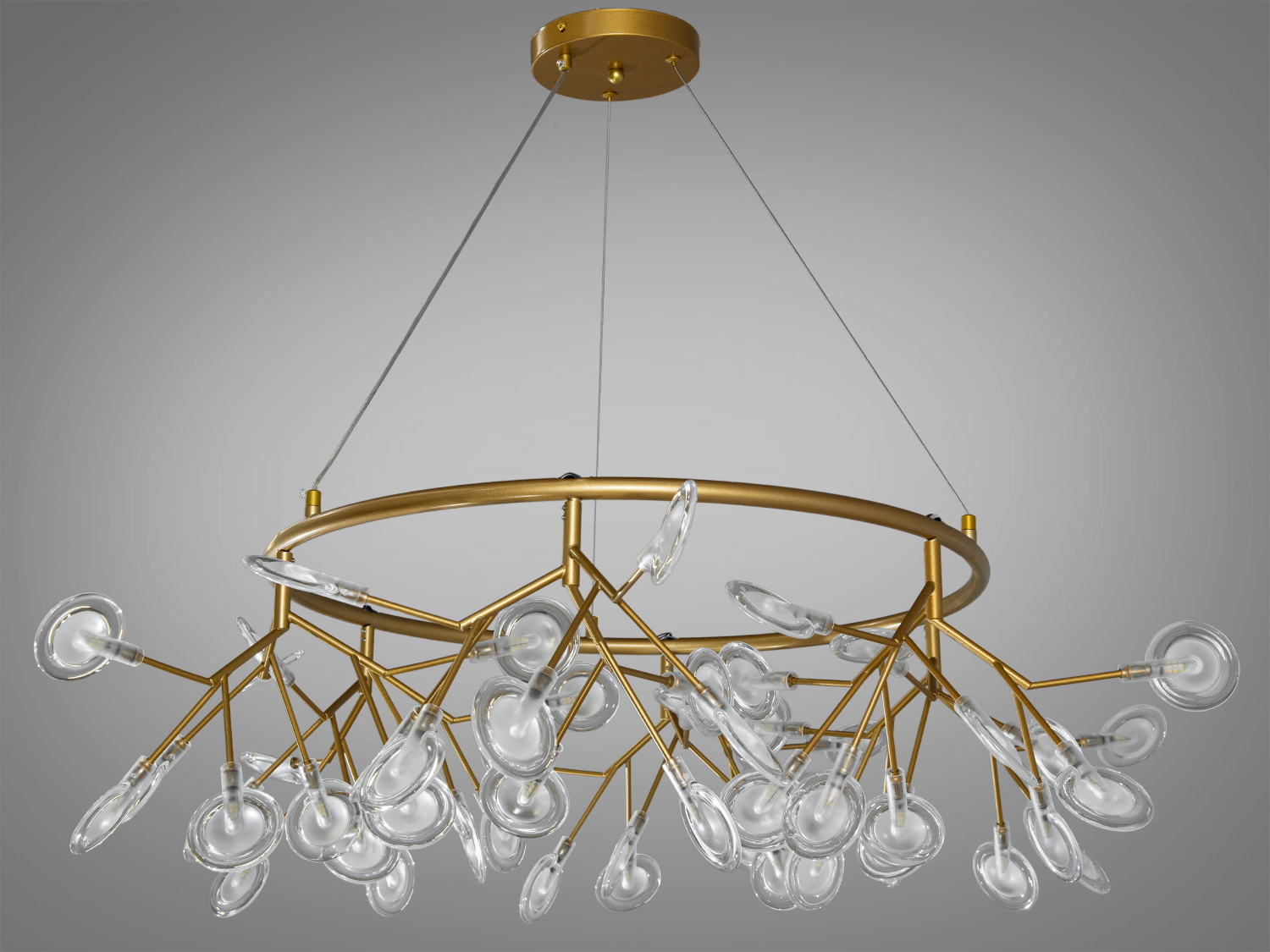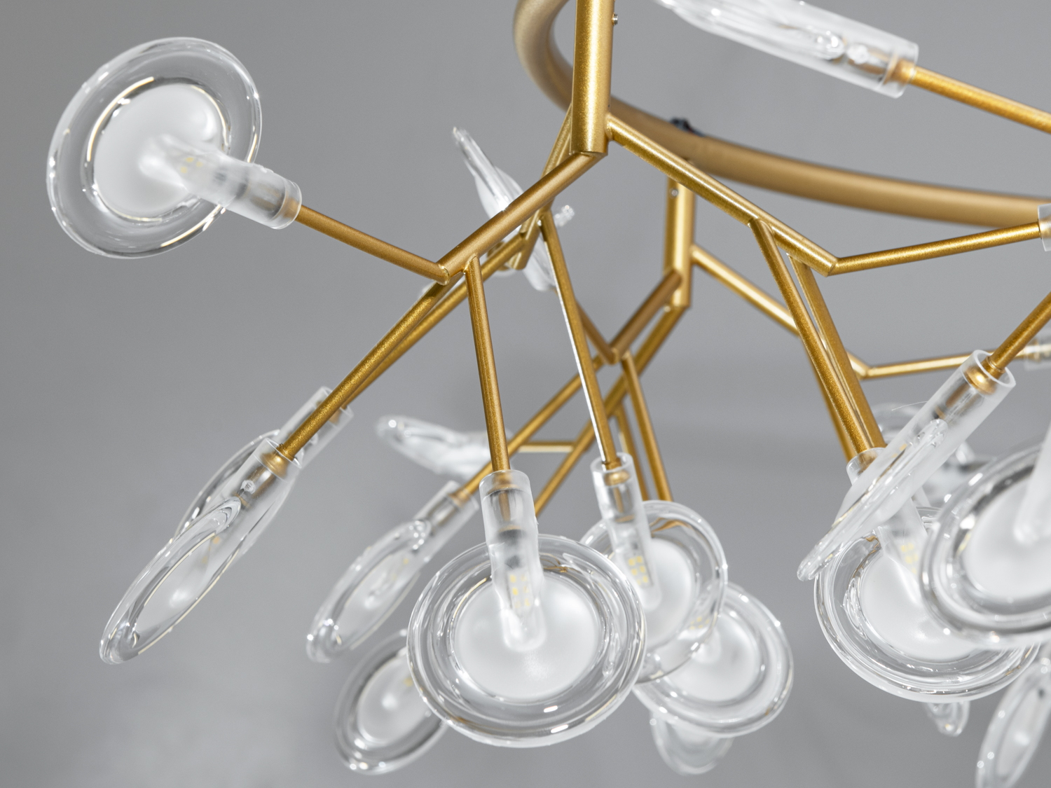 Елегантна люстра Світлячок у вестибуль, сатинове золото, 54 лампи Y887-54C GD