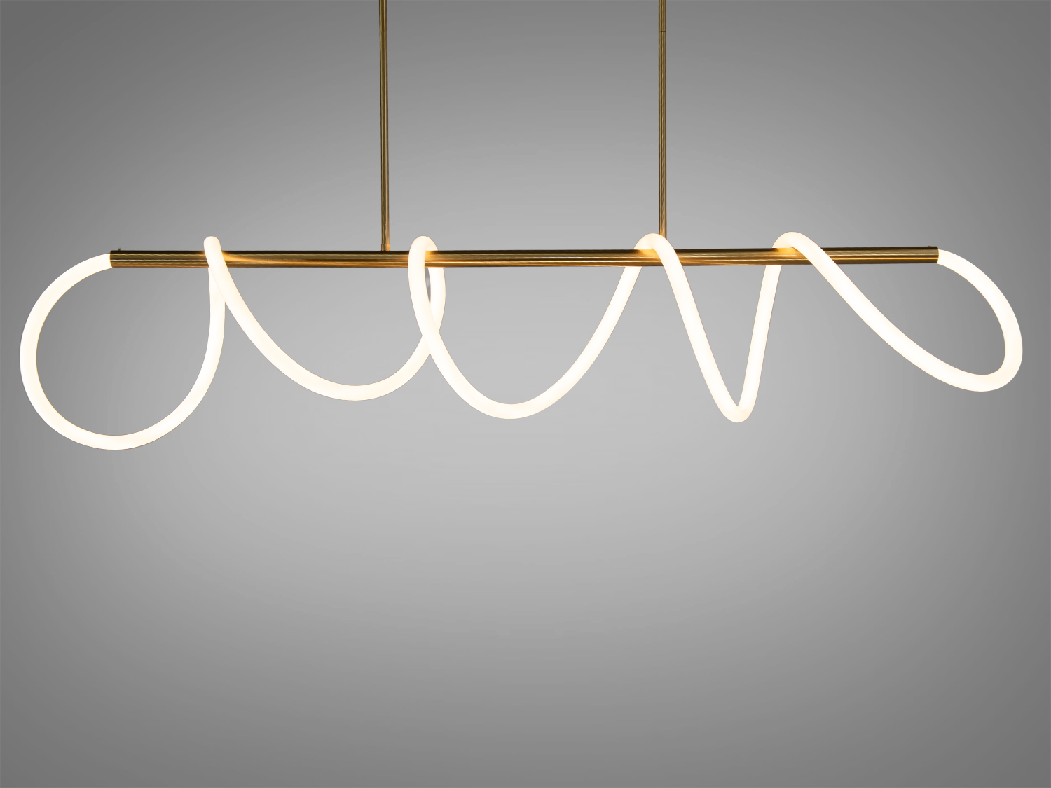 Гнучка силіконова трубка надає виробу оригінальність, а кольорова температура 3200K створює затишну атмосферу, підкреслюючи деталі інтер'єру. Ця люстра підійде для робочої зони, вітальні або їдальні.