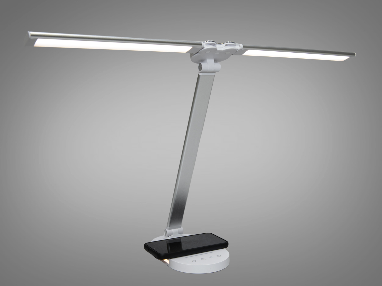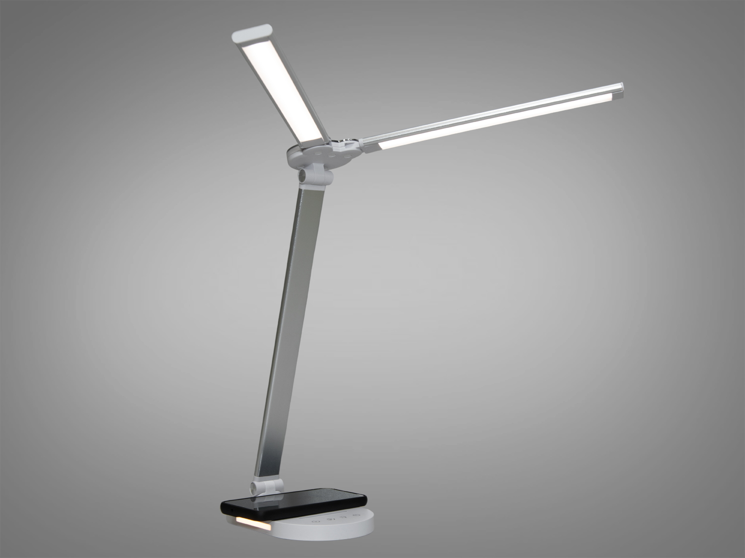Настільна LED лампа-трансформер з таймером і бездротовою зарядкою, хром сатин A5508SL wireless charge