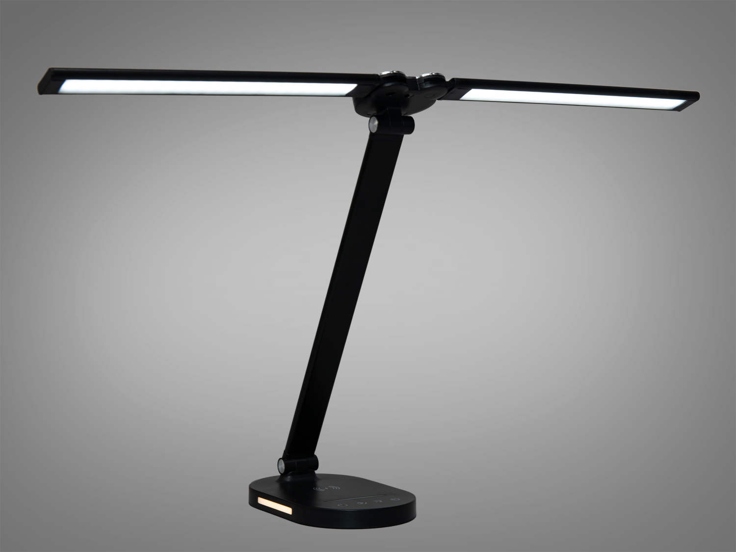 Гнучка конструкція лампи дозволяє легко змінювати кут нахилу та повороту світлодіодної панелі, забезпечуючи оптимальне освітлення робочого простору. Інтегрований нічник створює м'яке світло, що не заважає сну.