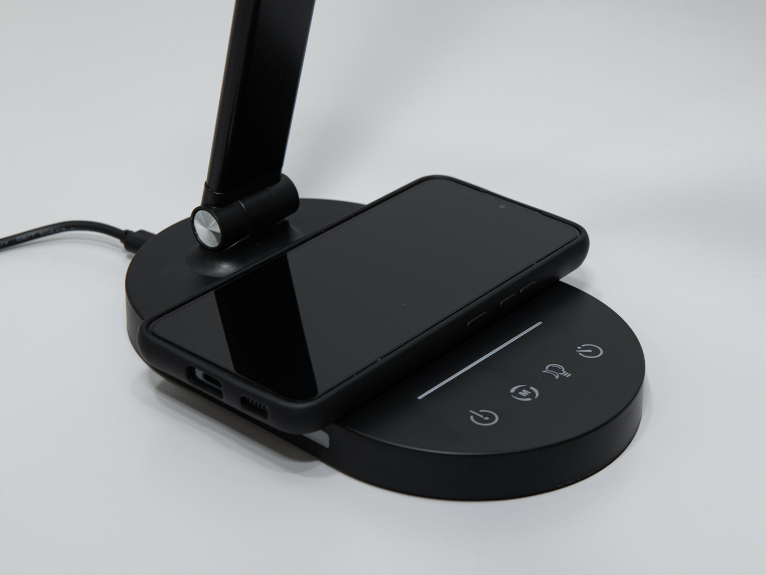 Ця лампа оснащена бездротовою зарядкою, яка дозволяє заряджати мобільні пристрої без зайвих кабелів. Просто розмістіть ваш телефон на базі лампи, і він почне заряджатися автоматично.
