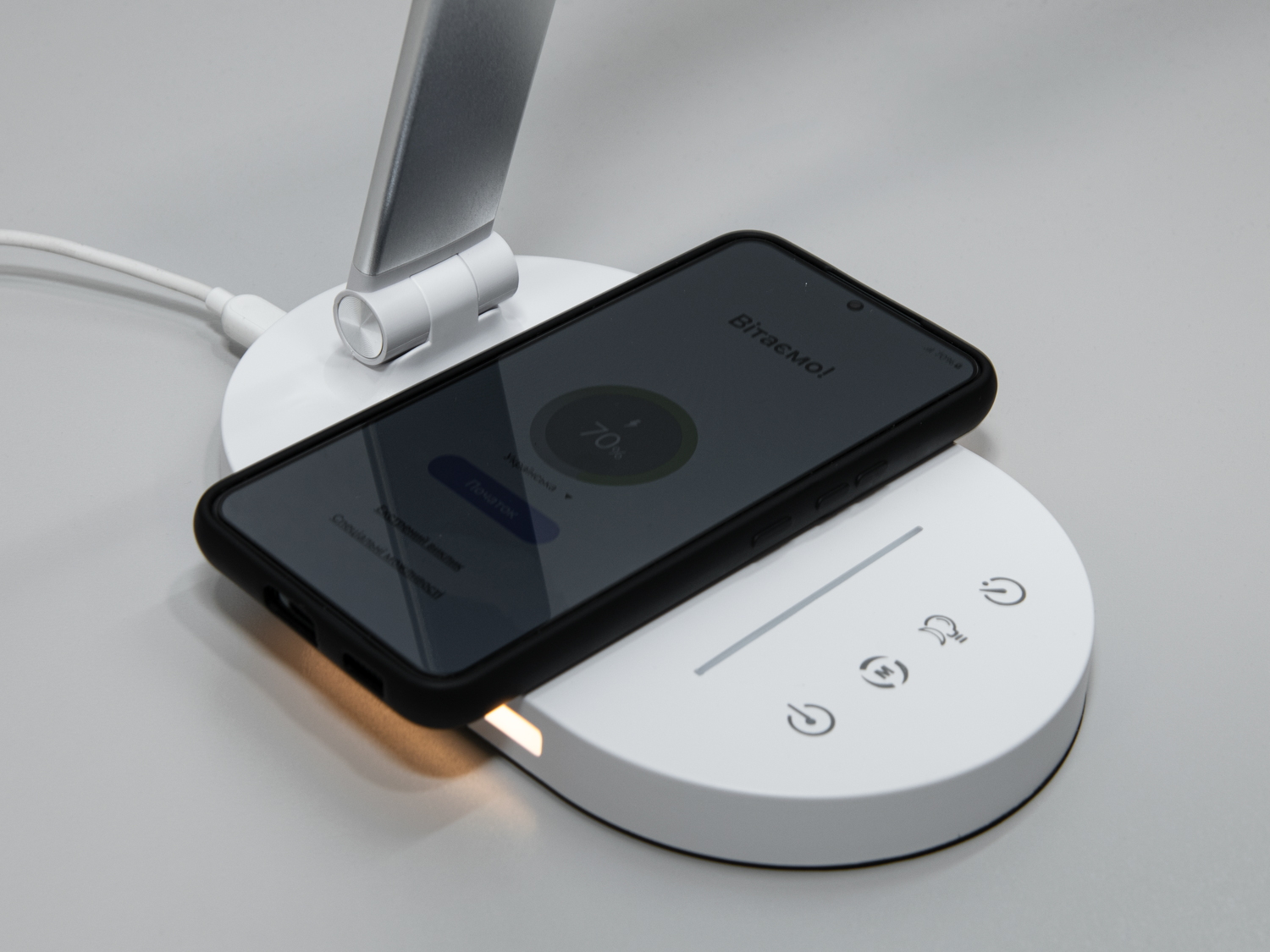 Однією з ключових особливостей лампи є функція бездротової зарядки. Просто покладіть телефон на базу, і він почне заряджатися, звільняючи вас від зайвих проводів та зберігаючи чистоту робочого столу.