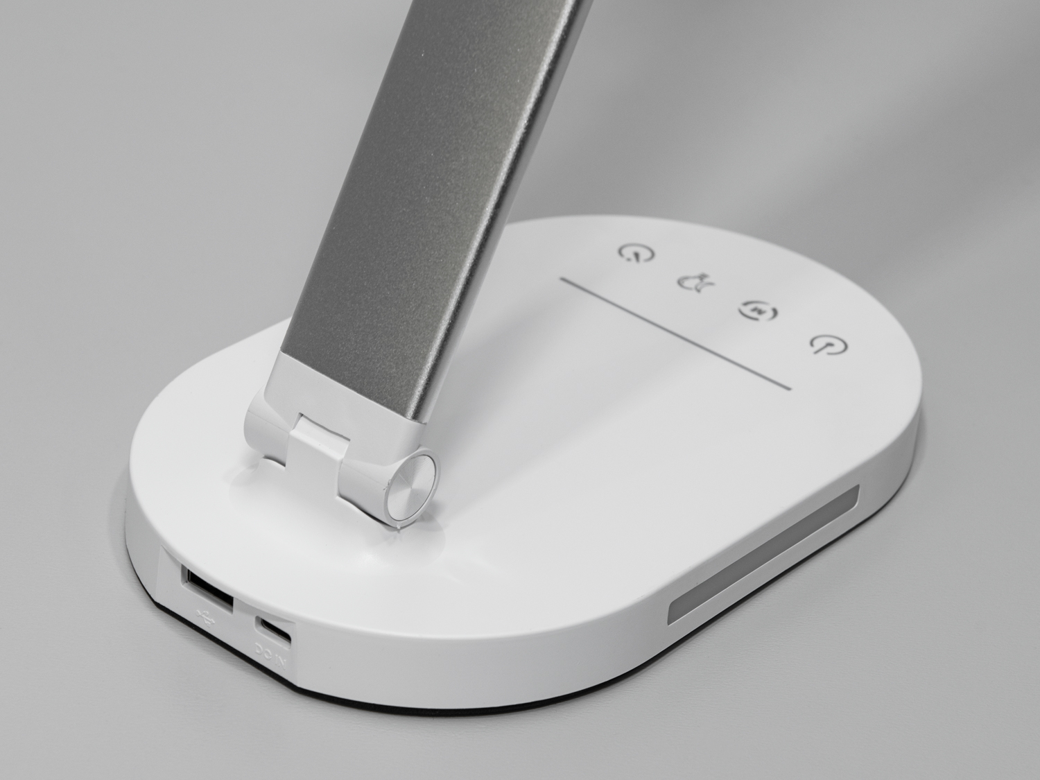 Лампа виконана з якісного пластику і покрита фарбою кольору хром сатин, що надає їй стильний вигляд. Компактна і легка, вона легко переміщується між кімнатами.