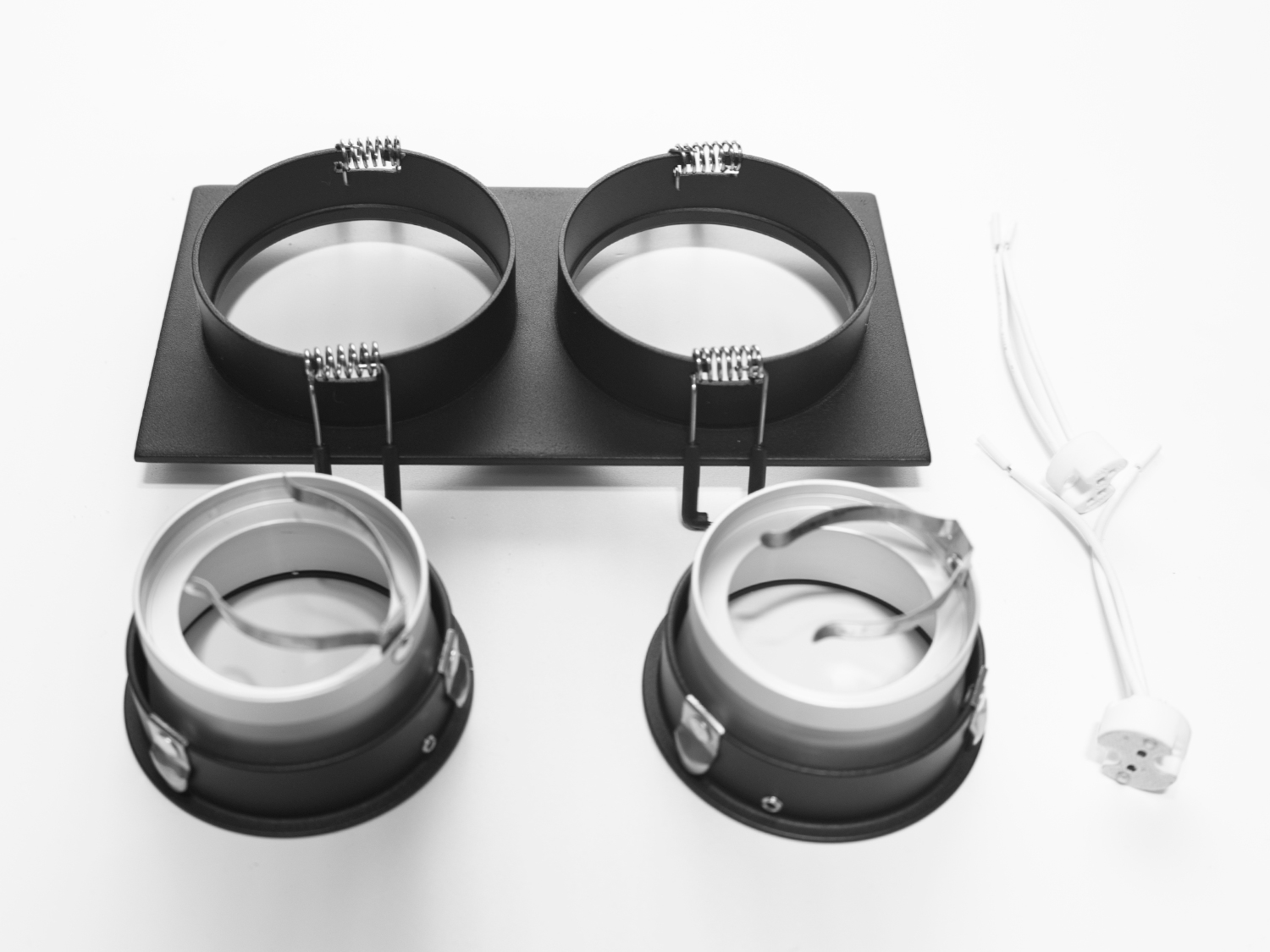 Світильник виконаний у класичному чорному кольорі, що дозволяє йому гармонійно вписуватися в будь-який інтер'єр, будь то сучасна квартира чи мінімалістичний офіс. Завдяки можливості повороту кожного з двох модулів, ви можете налаштувати освітлення на свій розсуд, акцентуючи увагу на потрібних деталях.