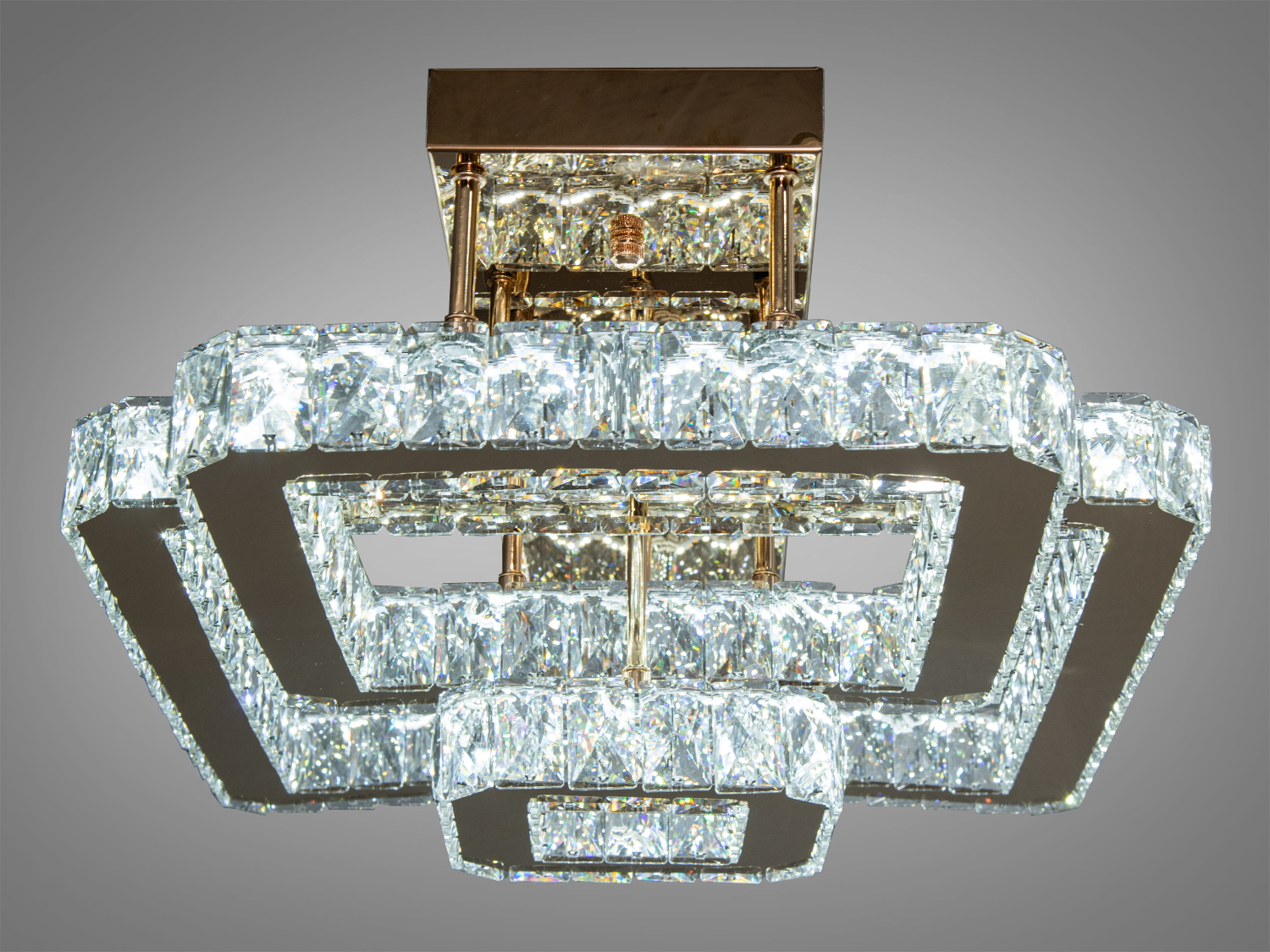 Стельова кришталева LED люстра стане вишуканим доповненням будь-якої вітальні. Її елегантний дизайн з двома круглими кільцями різного діаметру створює об'ємний та симетричний вигляд. Кришталеві вставки надають люстрі розкішного блиску, відбиваючи світло та створюючи ефект коштовних камінців.