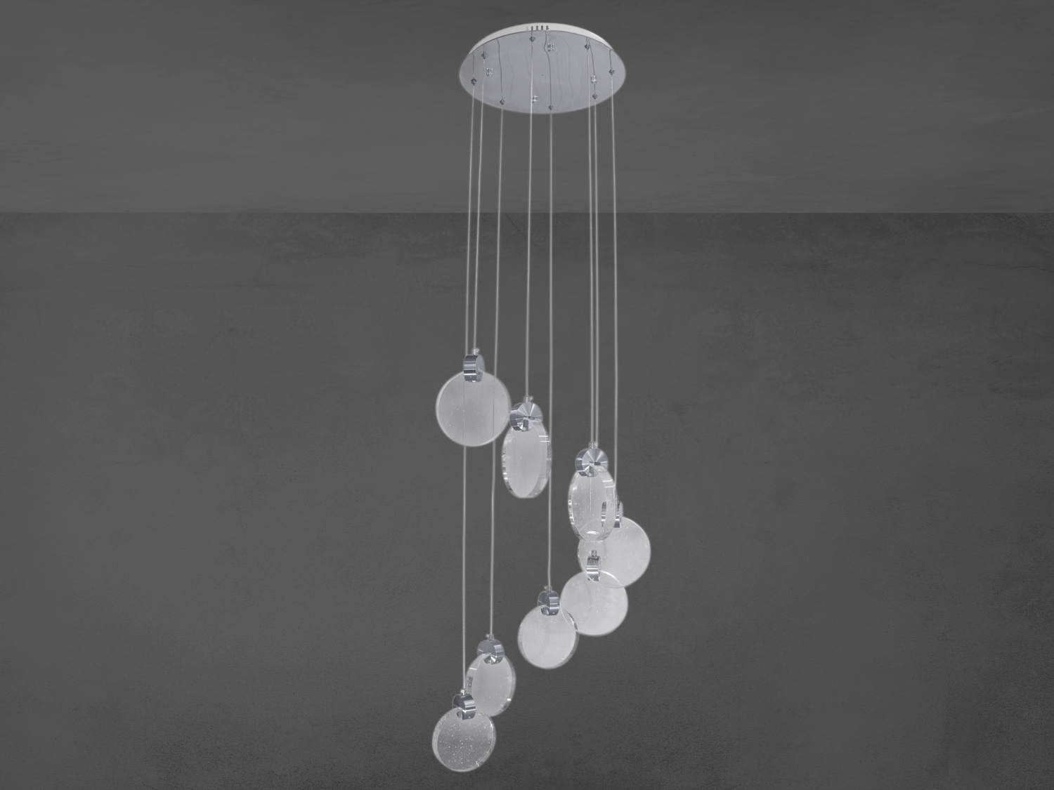 Завдяки своїй неповторній конструкції люстра здатна стати центральним елементом декору будь-якої кімнати, атракційно привертаючи увагу та стаючи предметом розмов. Водночас вона не тільки виконує функційну роль освітлювального приладу, а й слугує як художній об'єкт, що втілює в собі сучасні технології та дизайн. Колірна температура роботи люстри-підвісу 4100К.