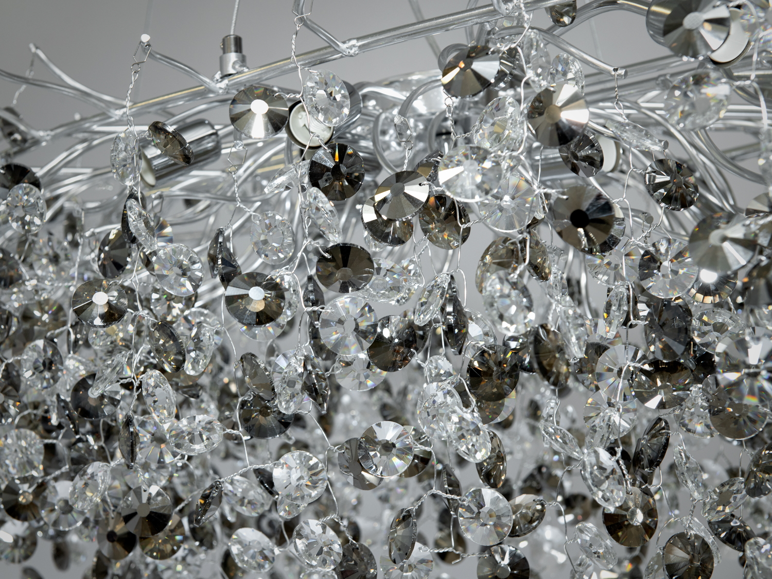 Дизайнерська люстра з алюмінієвим каркасом, облита золотом, і відблисками хрустких, створює не тільки освітлення, а й емоційний зв'язок із природою та сезонами.