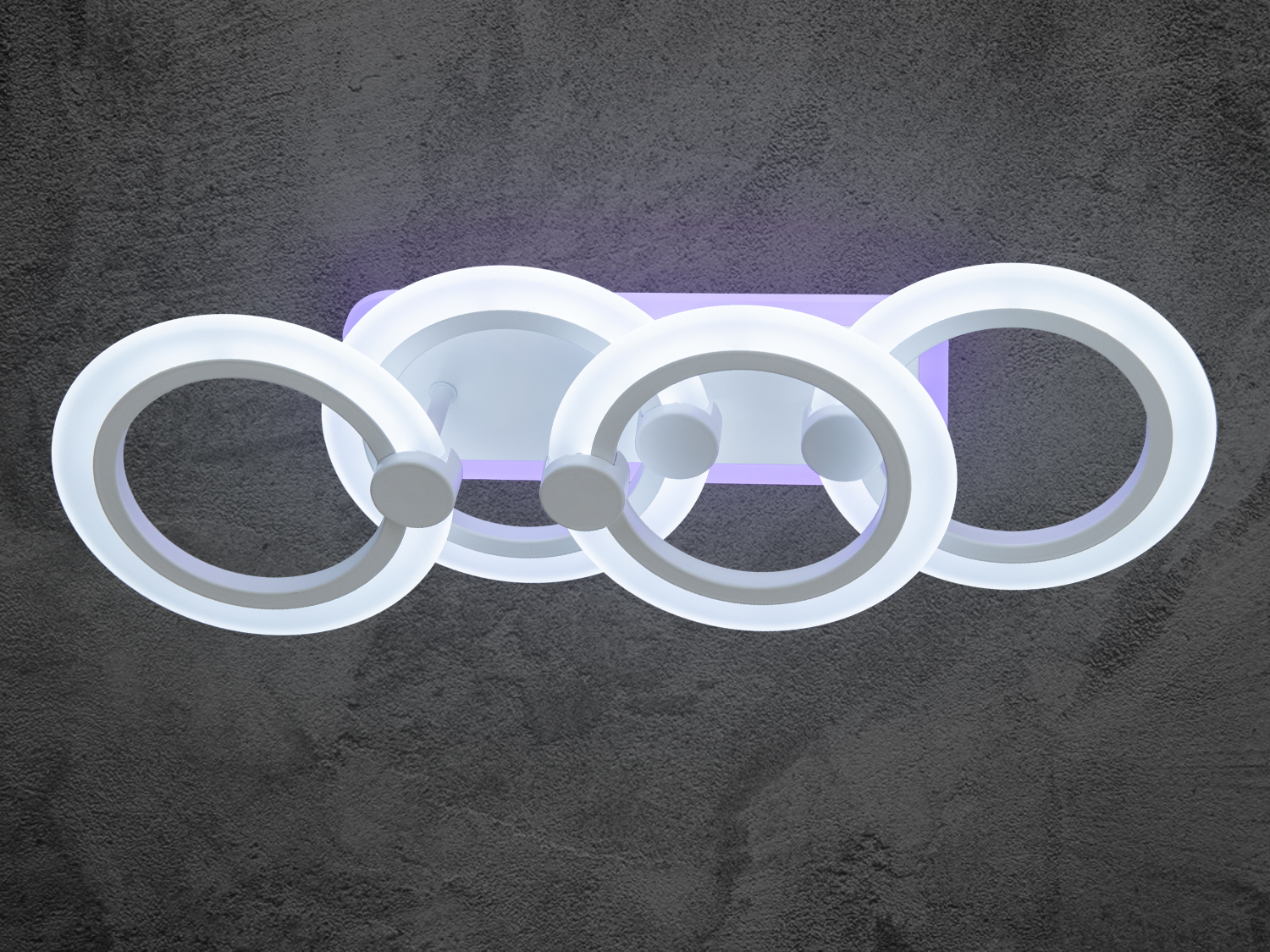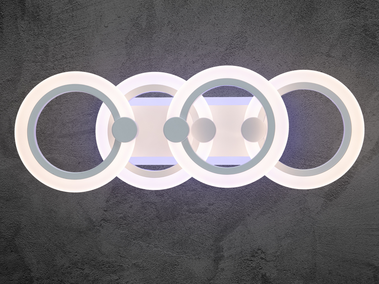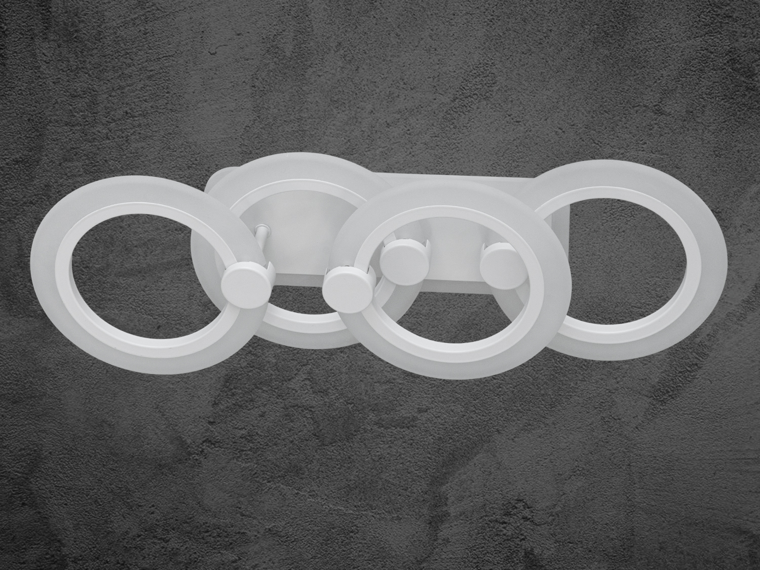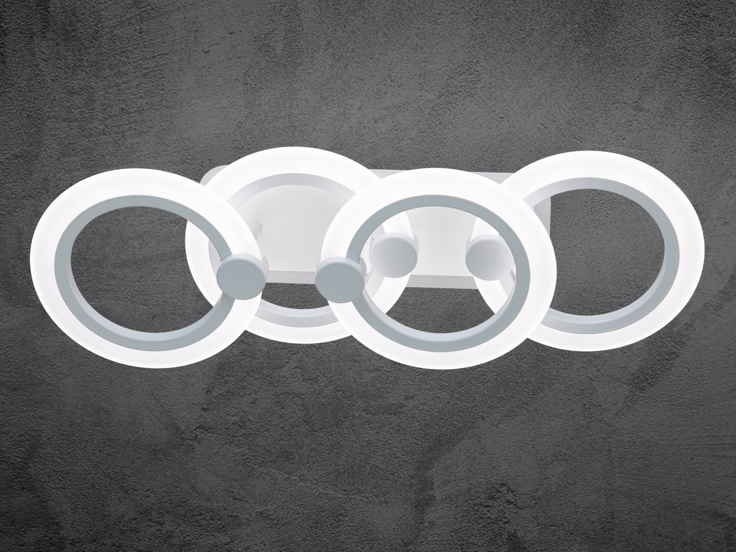 Люстра виконана у формі пересічних геометричних кілець, які створюють сучасний і мінімалістичний образ. Чотири елегантні кільця однакового розміру з рівними та гладкими лініями підкреслюють витонченість дизайну.