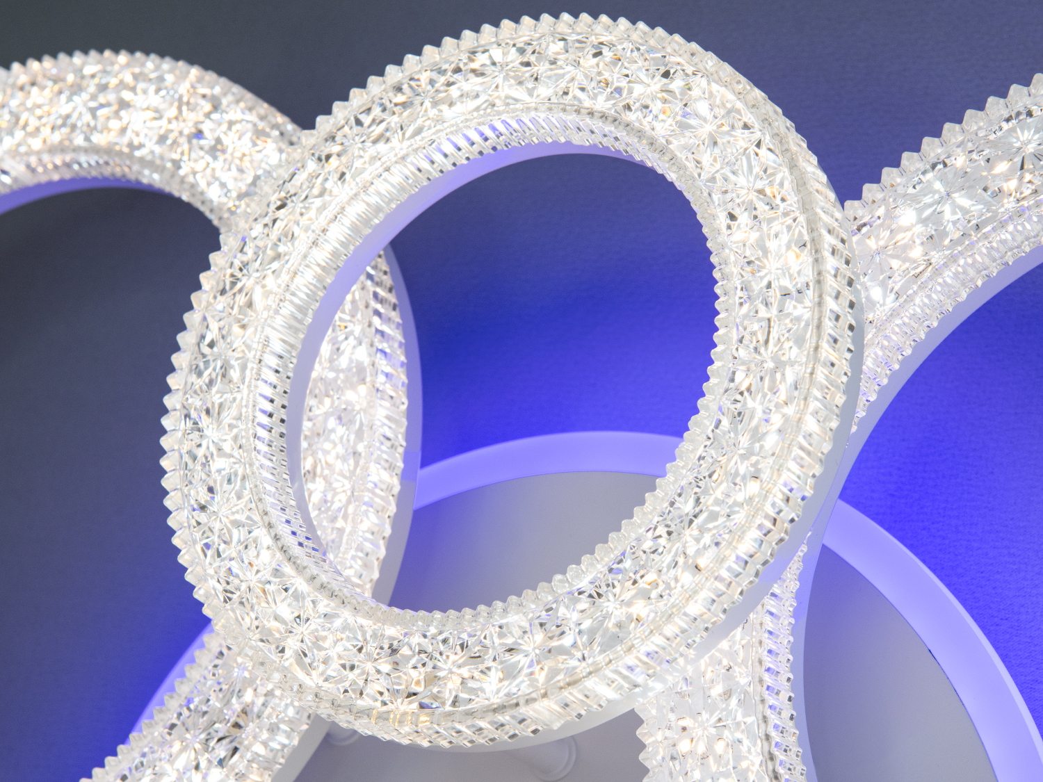 Високоякісні матеріали та виконання. Люстра виконана з високоякісного металу та акрилу, що гарантує довговічність та стійкість конструкції. Перехрещені кільця створюють унікальний візуальний ефект, додаючи кімнаті об'єму і динаміки.
