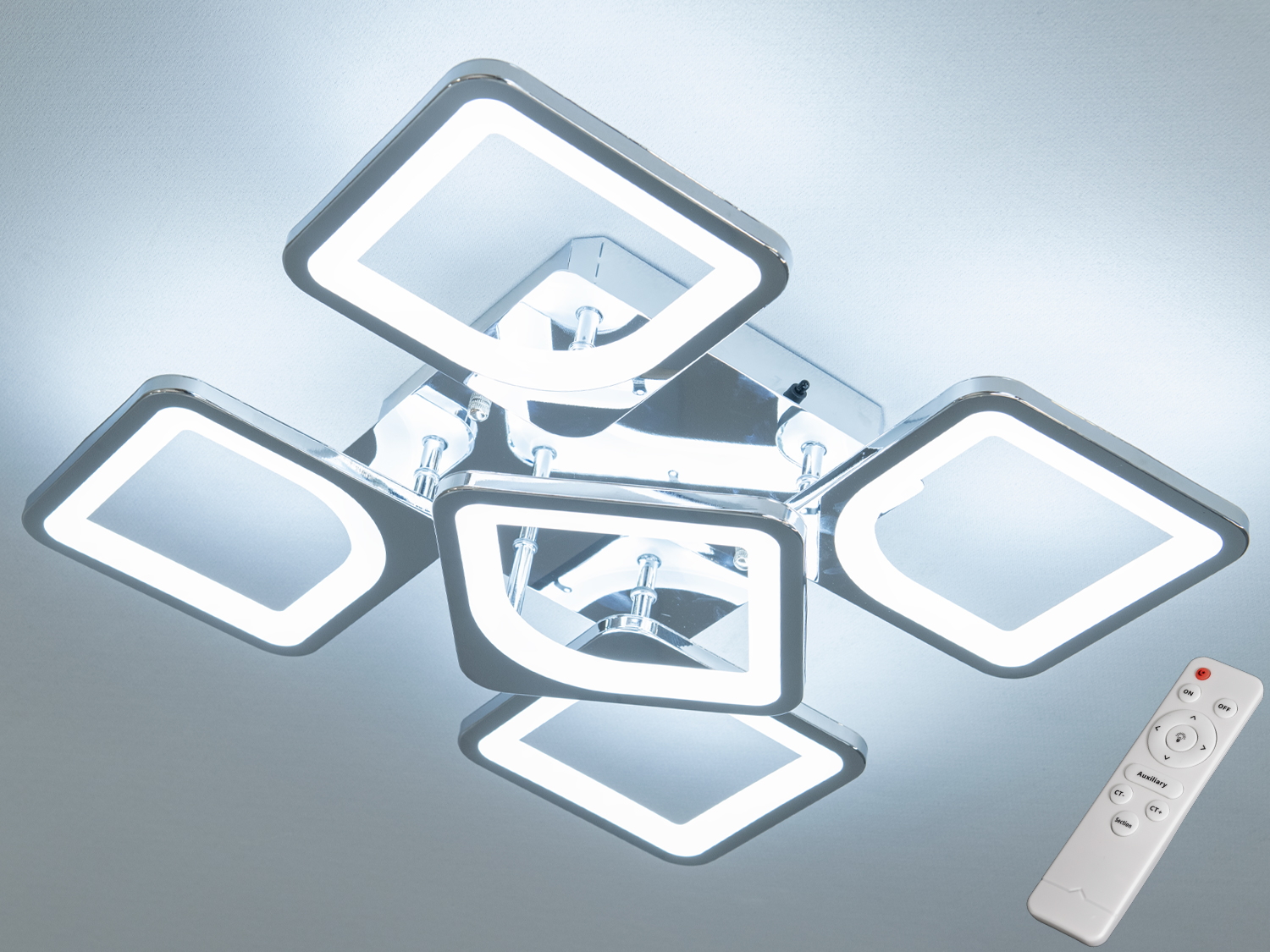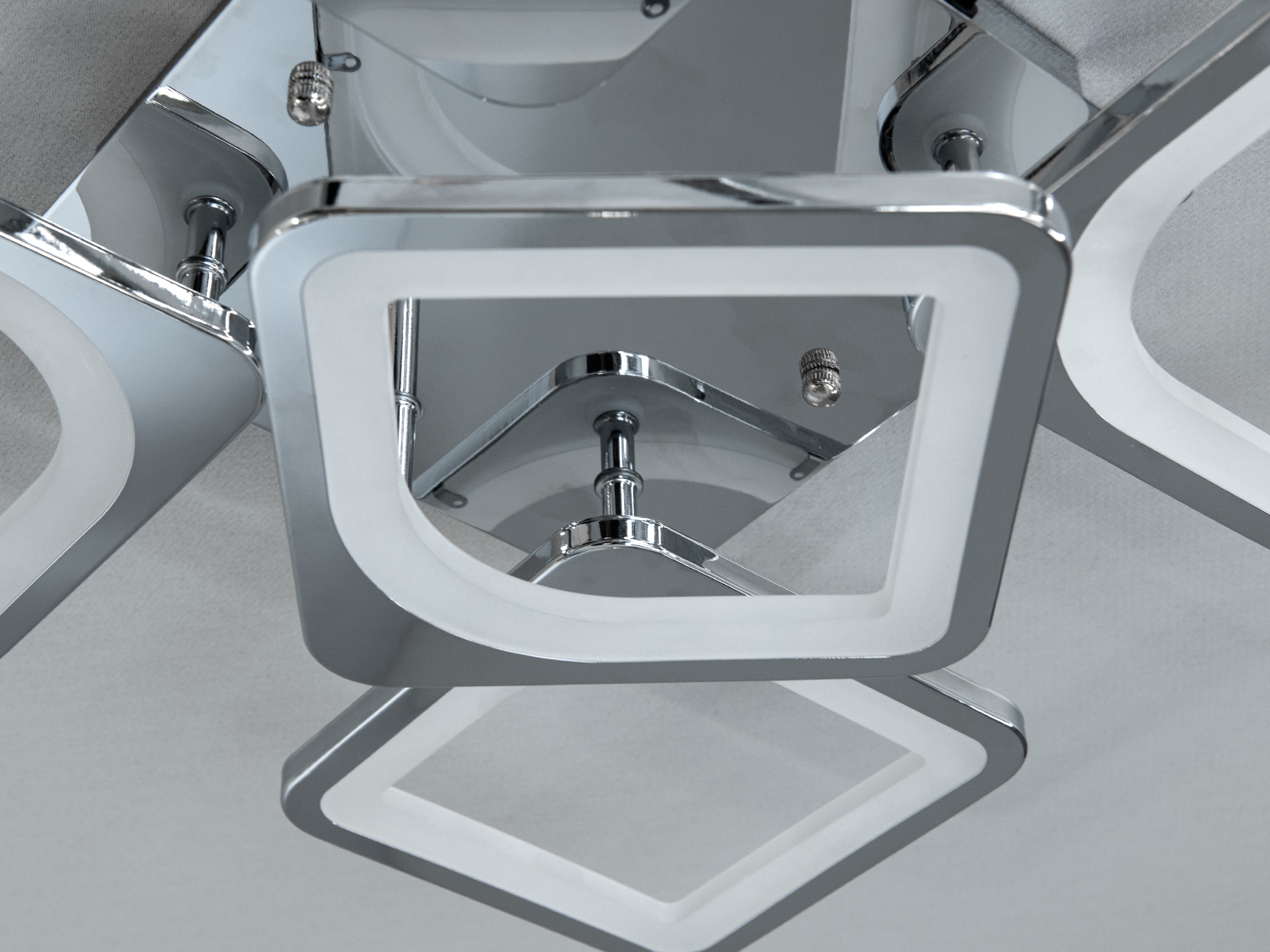 Світлодіодна люстра в сучасному стилі — вибір для будь-якого інтер'єру. Поєднання хромованих контурів та білих матових вставок надає виробу витонченого та елегантного вигляду. Це робить люстру універсальним рішенням для різних стилів, включаючи класичний та «hi-tech».